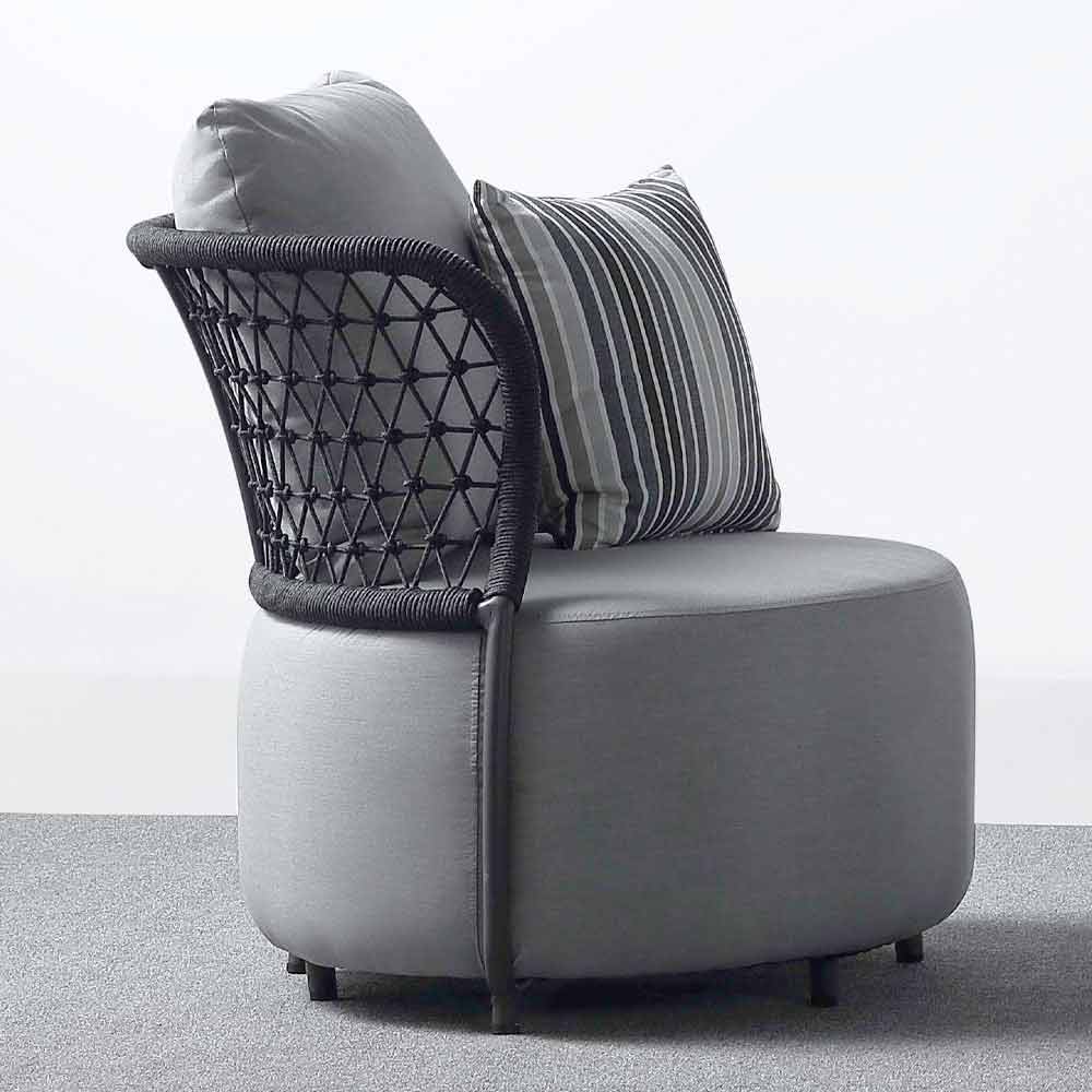 Have lænestol lavet i malet aluminium e antracit finish netværk med sæde og rygpude dækket af gråt vandafvisende stof . Dette supplement er ideelt til at give liv til et moderne og eksklusivt møbel , og det indeholder alle de grundlæggende egenskaber ved den perfekte udendørs lænestol, da det sikrer et behageligt og særligt indbydende sæde sammen med et innovativt design med en original smag . Den hidtil usete kombination af forskellige materialer og strukturer giver også produktets æstetik en stærk personlighed og beriger det på en unik og avantgardistisk måde.