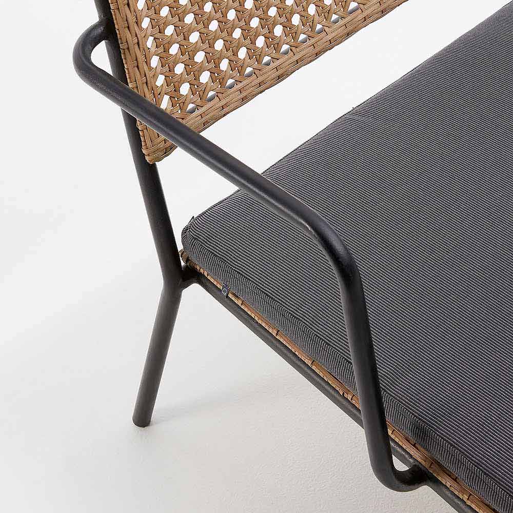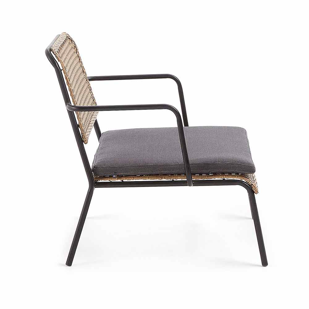 Havelænestol lavet med en sort pulverlakeret galvaniseret stålramme; sæde og ryglæn i beige vævet polypropylen.