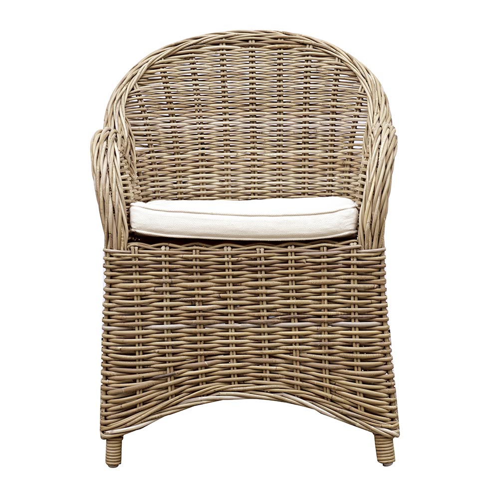 Denne lænestol er lavet af robust træ og vævet med naturlig grå kubu-fiber og tilbyder en unik kombination af styrke og skønhed. Kubu-grå giver med sine neutrale og naturlige nuancer et varmt og indbydende udtryk, mens træstrukturen garanterer stabilitet og holdbarhed over tid.
