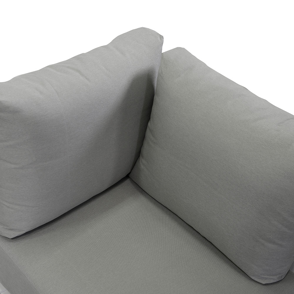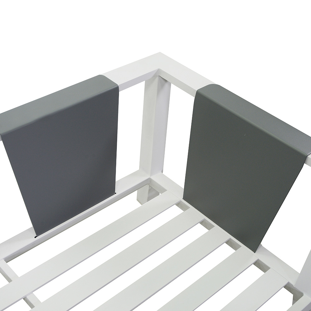 Dette solesæt har et hvidt pulverlakeret aluminiumsstel, som ikke kun tilføjer et strejf af moderne elegance, men også sikrer holdbarhed og modstandsdygtighed over for vejret. De lysegrå hynder af vandafvisende og aftageligt stof giver uovertruffen komfort, hvilket gør dette sæt ideelt til lange perioder med afslapning udendørs.