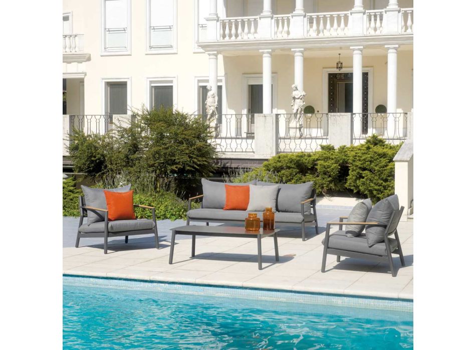 Dette havemøbelsæt er den ideelle løsning for dem, der søger en perfekt balance mellem elegance og komfort . Dette sæt består af lænestole og en sofa med polstrede hynder og et robust sofabord og er den ideelle tilføjelse til at nyde afslappende stunder udendørs. Det moderne design og de rene linjer passer perfekt ind i ethvert udendørs miljø, fra rummelige terrasser til hyggelige haver.