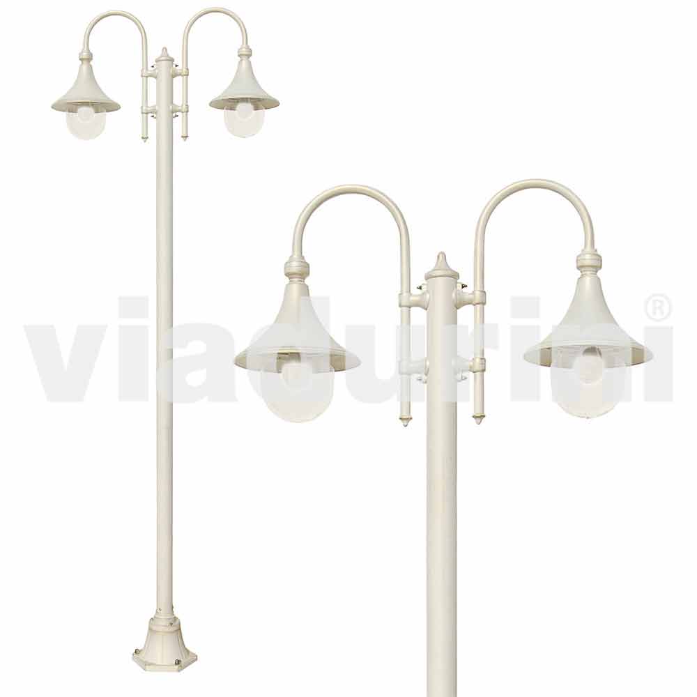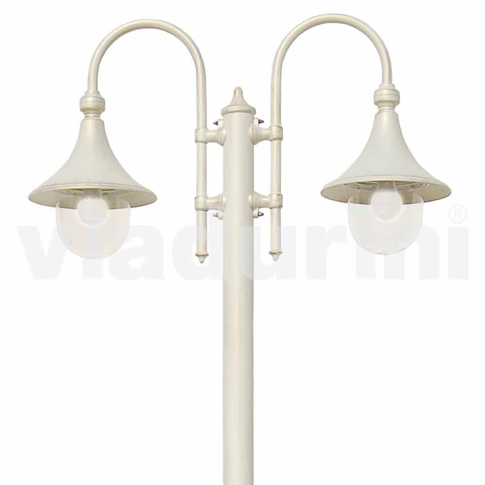 To-lys havelampe i hvid aluminium lavet i Italien, Anusca