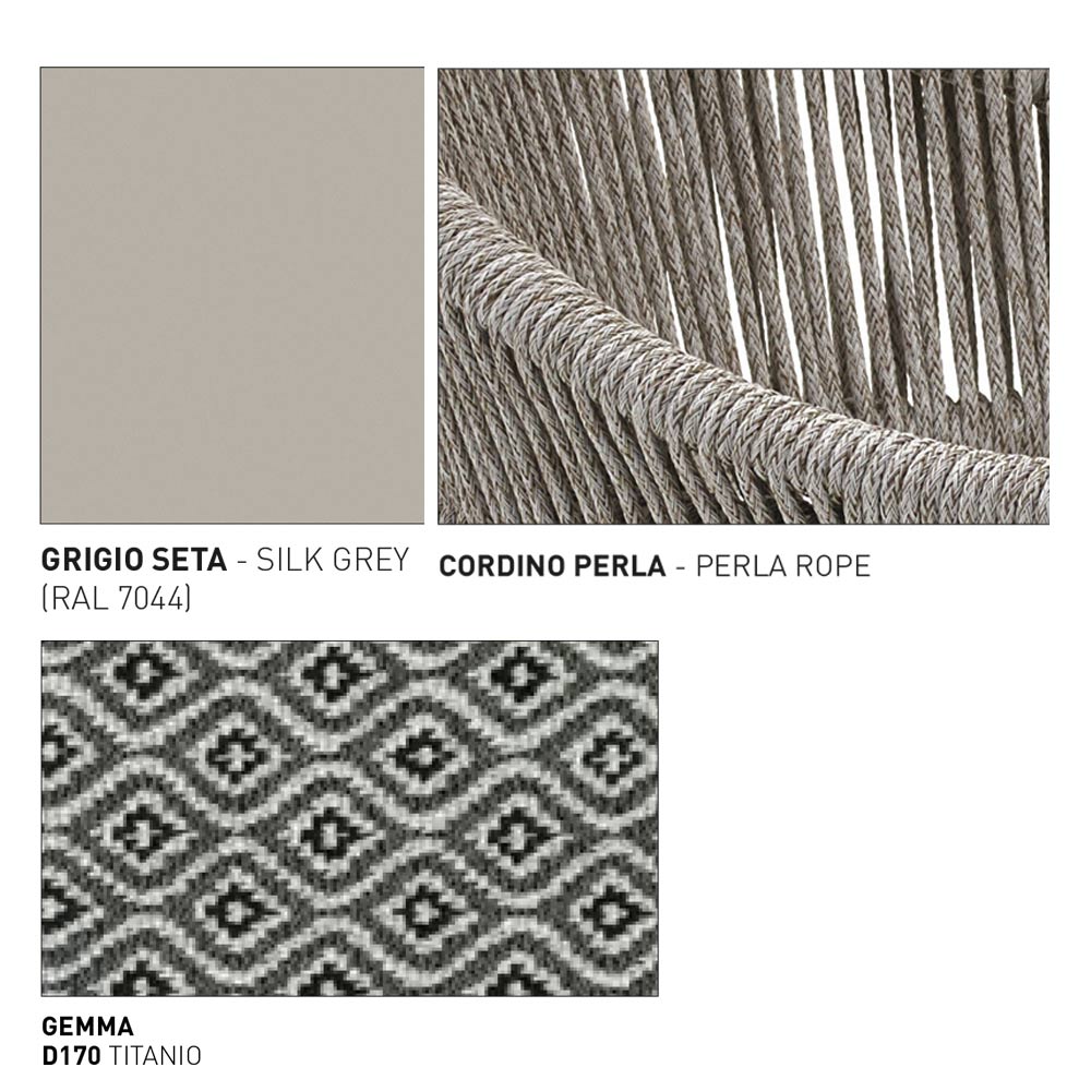 Havepuf bestående af et pulverlakeret aluminiumsstel med silkegrå finish, håndvævet fiber med perlefinish og sæde med polstring . Et møbel til udendørs eller indendørs rum, der er i stand til at fuldende komforten og stilen i det omgivende miljø for et indbydende resultat og en moderne æstetik .
