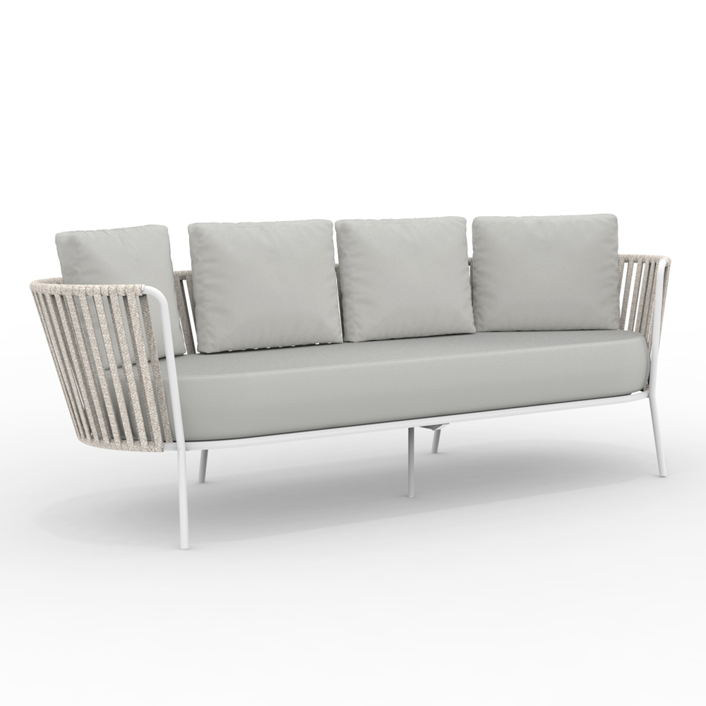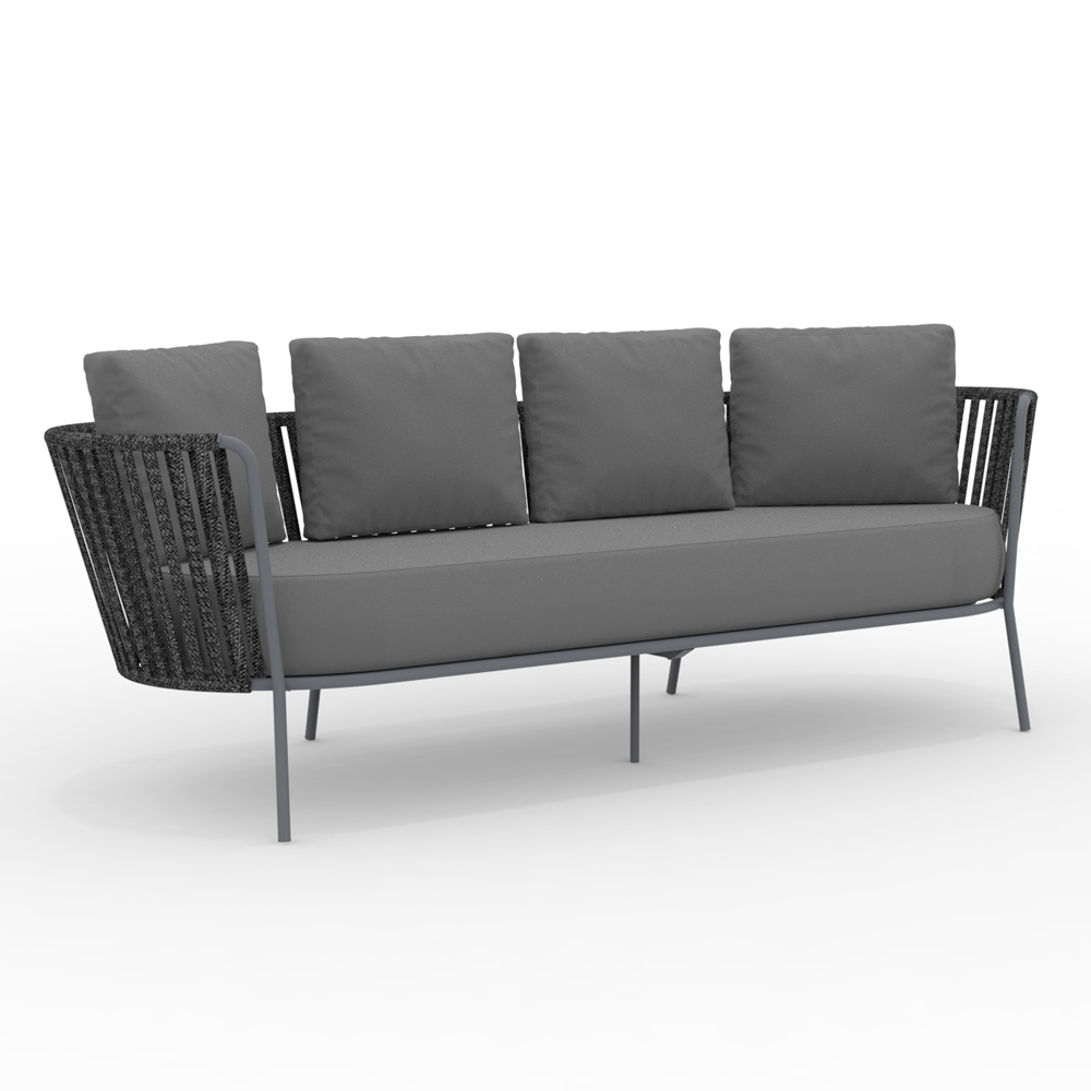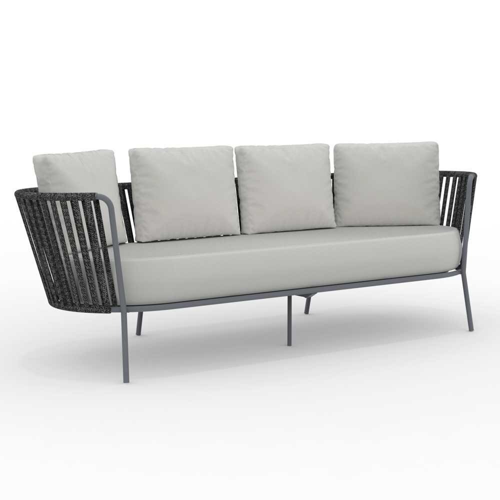 Denne smukke havesofa kombinerer et moderne og raffineret design med materialer af høj kvalitet, ideel til at skabe et indbydende og sofistikeret miljø i din have, terrasse eller veranda.