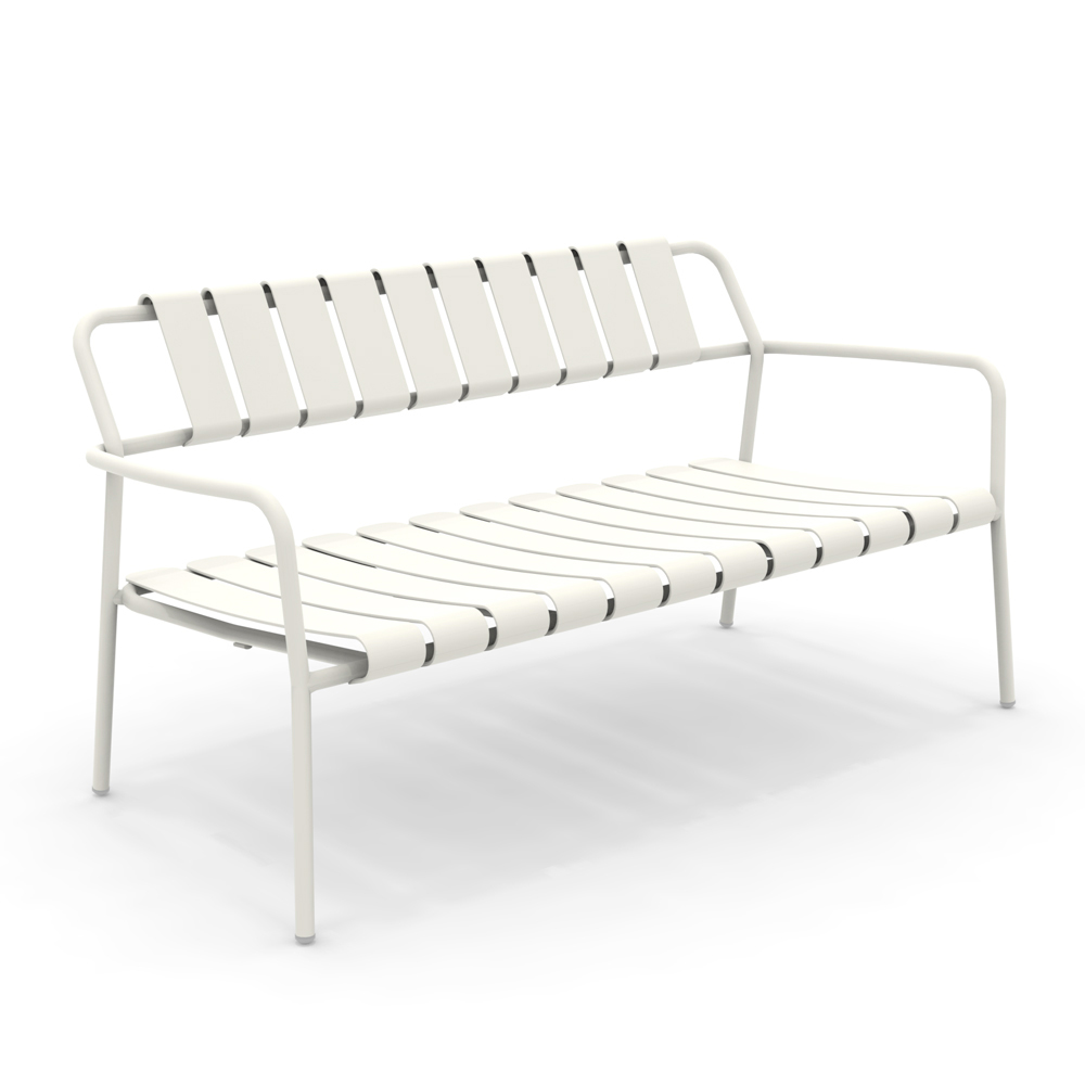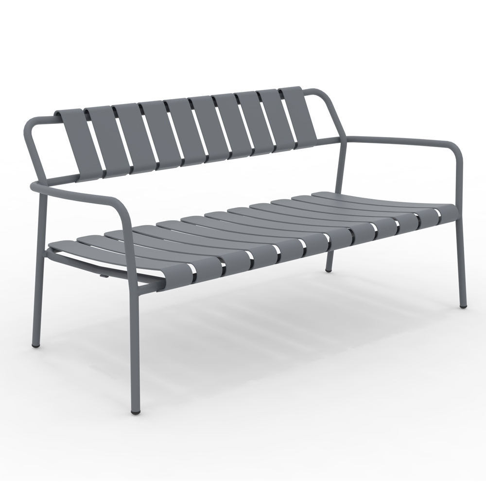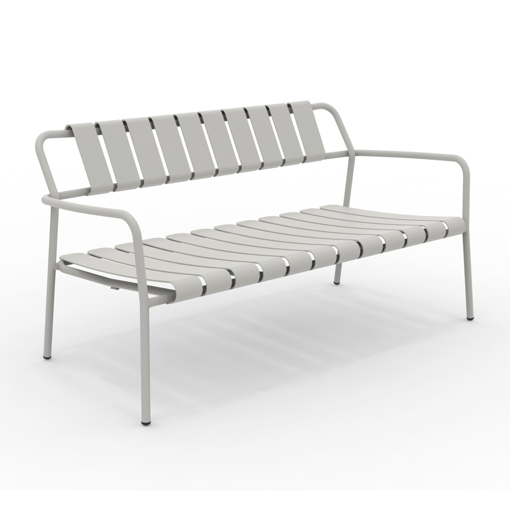 Denne udendørs sofa i aluminium er det ideelle valg for dem, der ønsker et møbel med et moderne design og maksimal praktisk anvendelighed. Den er fremstillet udelukkende af pulverlakeret aluminium og garanterer enestående modstandsdygtighed over for atmosfæriske påvirkninger. Den er perfekt til brug i haver, terrasser og offentlige miljøer såsom udendørs barer og restauranter.