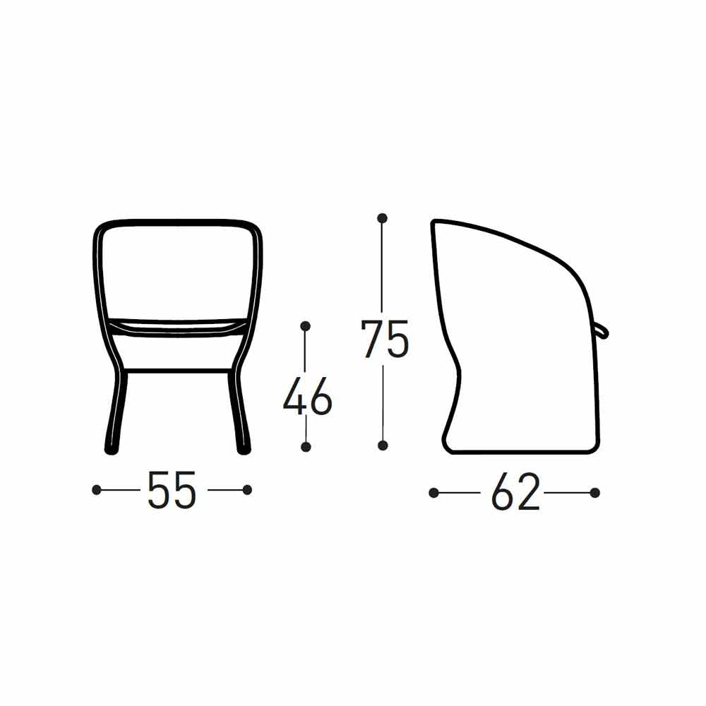 Konstruktionen af strukturen kombinerer ben og ryg i en enkelt overflade, der smalner lidt under sædet for at opretholde større stabilitet.