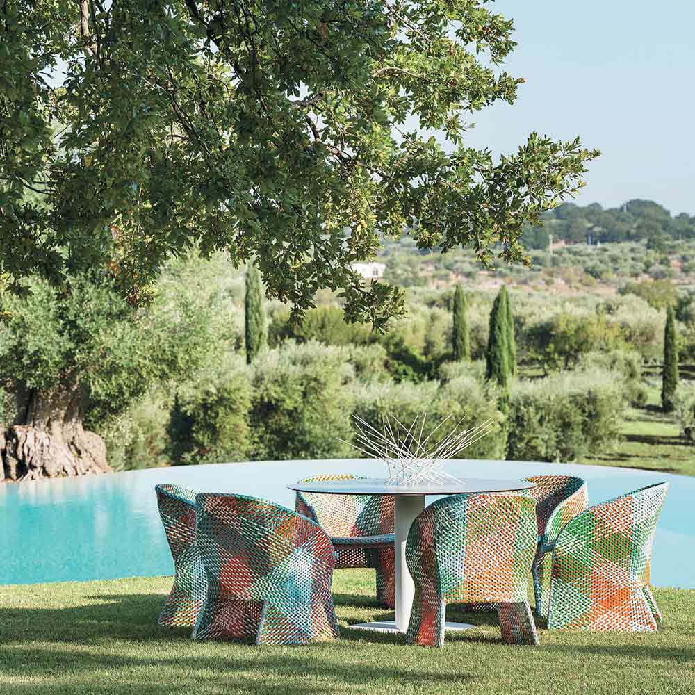 Vedligeholdelse: Samlingen tåler sollys og regn. Vi anbefaler regelmæssig vedligeholdelse og særlig opmærksomhed mod beskyttelsen af artiklene i tilfælde af ugunstige vejrforhold (is, hagl, pludselige ændringer i temperatur, fugtighed, vedvarende, torrid varme eller ekstrem kulde). Holdbarheden og integriteten af disse emner afhænger af den pleje, som de opretholdes med. Selv for aluminium og stålprodukter, selvom de er beskyttet af behandlinger og finish, der er egnet til udendørs brug, er det vigtigt at forhindre, at vand stagnerer i selve produktet. Faktisk har alle artikler tekniske huller, der er nødvendige til påføring af beskyttelsesbehandlinger og finish. Indføring af vand i disse huller og dets stagnation kan forårsage rust i rørets indre dele.