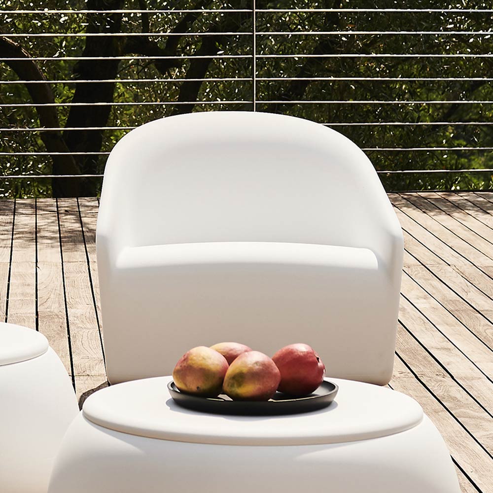 Havestol i uigennemsigtig farvet polyethylen fremstillet i Italien.