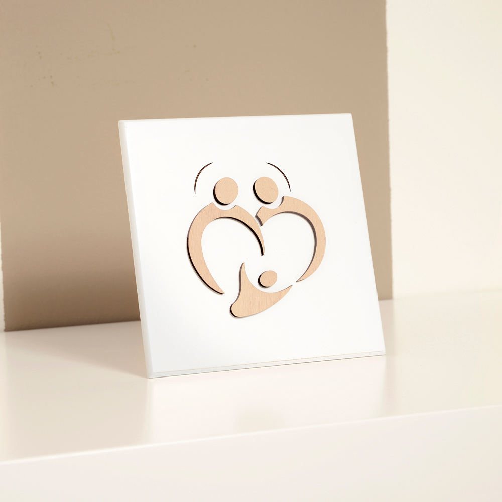 Dette maleri er resultatet af italiensk håndværk, figurerne er tegnet i hånden og derefter malet med laserstrålens lys, uden spild og med respekt for miljøet. Den minimale og essentielle stil ønsker kun at få den sødme frem, der kommer fra repræsentationen af familien.