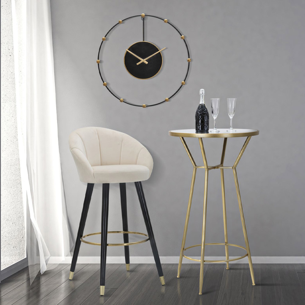 gulddetaljer i jern og polstret sæde beklædt med stof. Dens design fuldendes og gøres endnu mere funktionelt af det