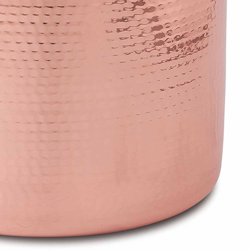 Høj gryde med hanke og låg, håndlavet i hamret kobber fremstillet i Italien.