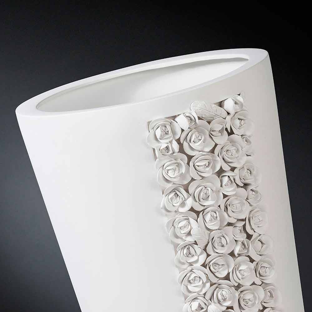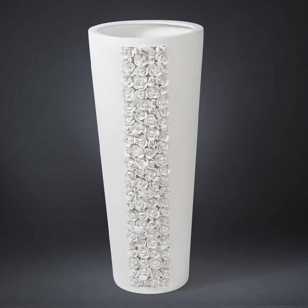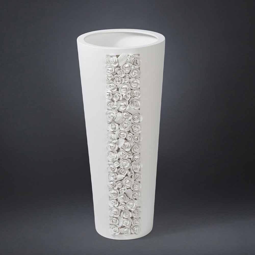 Høj ornamental vase i hvid keramik håndlavet i Italien.