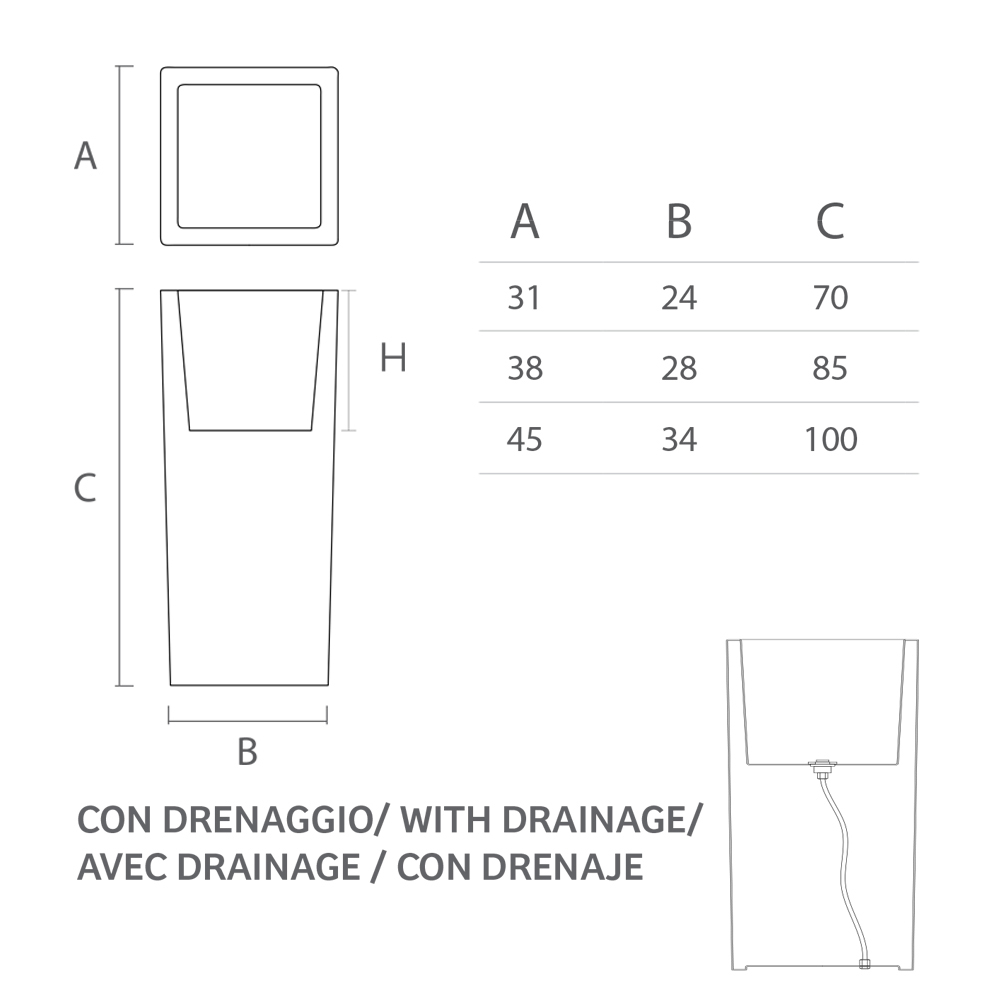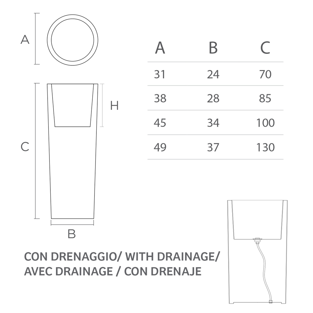 Strukturen inkluderer et vandafløbssæt, så denne vase kan dekorere indendørs og udendørs områder uden at ofre det praktiske og funktionelle aspekt. Endelig er denne indendørs vase udstyret med et integreret LED-lys for at give et ekstra strejf af stil til indendørs rum, men også til udendørs miljøer under arrangementer.