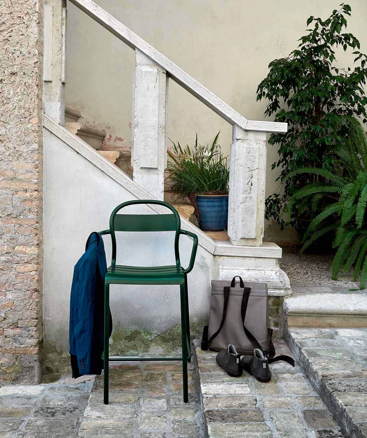 Selima er en høj udendørs afføring med et moderne og elegant design kendetegnet ved et tidløst og alsidigt design. Skammelen er udelukkende lavet af aluminium, hvilket gør den perfekt til brug i høje køkkener eller stænger både udenfor og inde, til husholdning og ikke-husholdningsbrug og er udstyret med armlæn for større komfort.