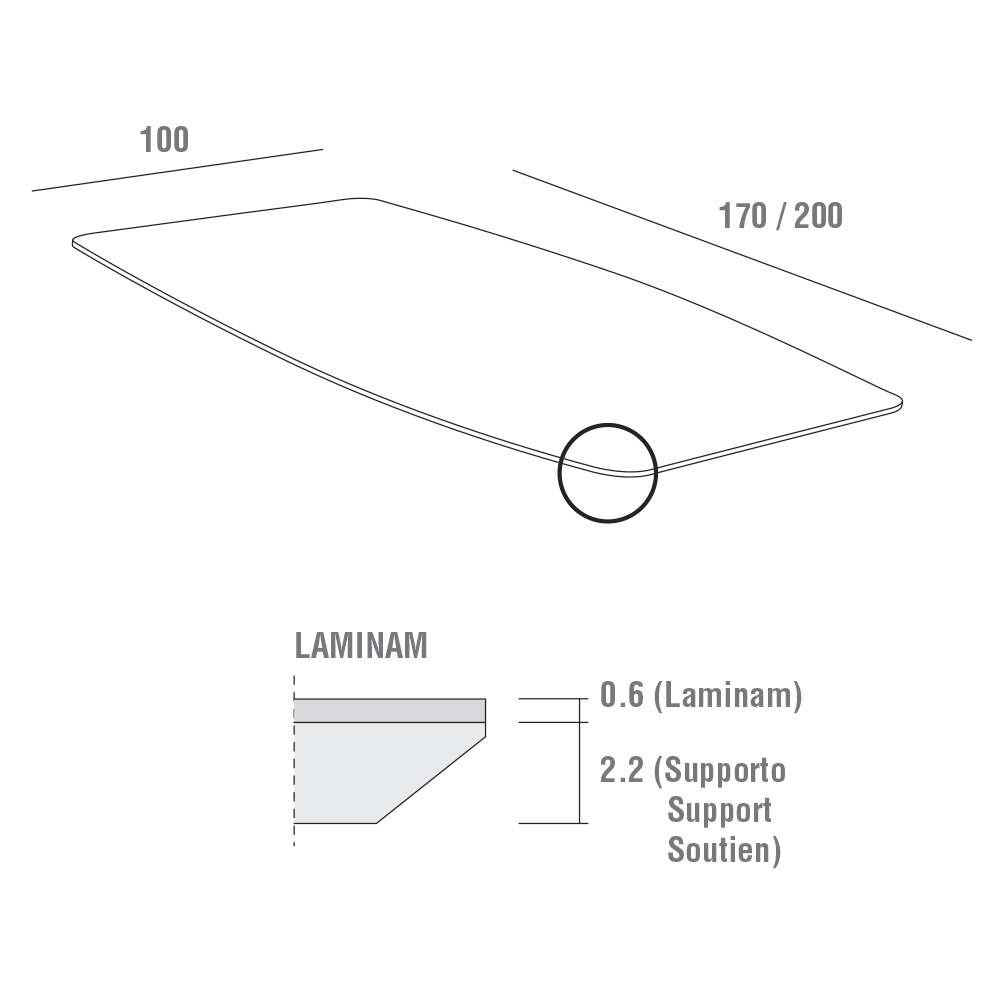 laminam (porcelænsstentøj) top limet på en mdf støtteoverflade. Fra mødet mellem laminamkeramikkens elegance og det eksklusive og klassiske præg givet af den vidunderlige finish på benene, skabes en unik indretningsløsning, kendetegnet ved en