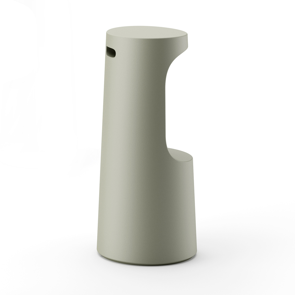 polyethylen i en mat finish, der giver alsidighed og modstandsdygtighed over for varme, sol og stød. Afføringen har også en praktisk og behagelig fordybning, der fungerer som en fodstøtte og et håndtag placeret på bagsiden af afføringen, der letter fjernelsen og gør produktet endnu mere funktionelt. Ideel til at afslutte indretningen af miljøer med et moderne og minimalt design, der giver karakter og personlighed til miljøet.