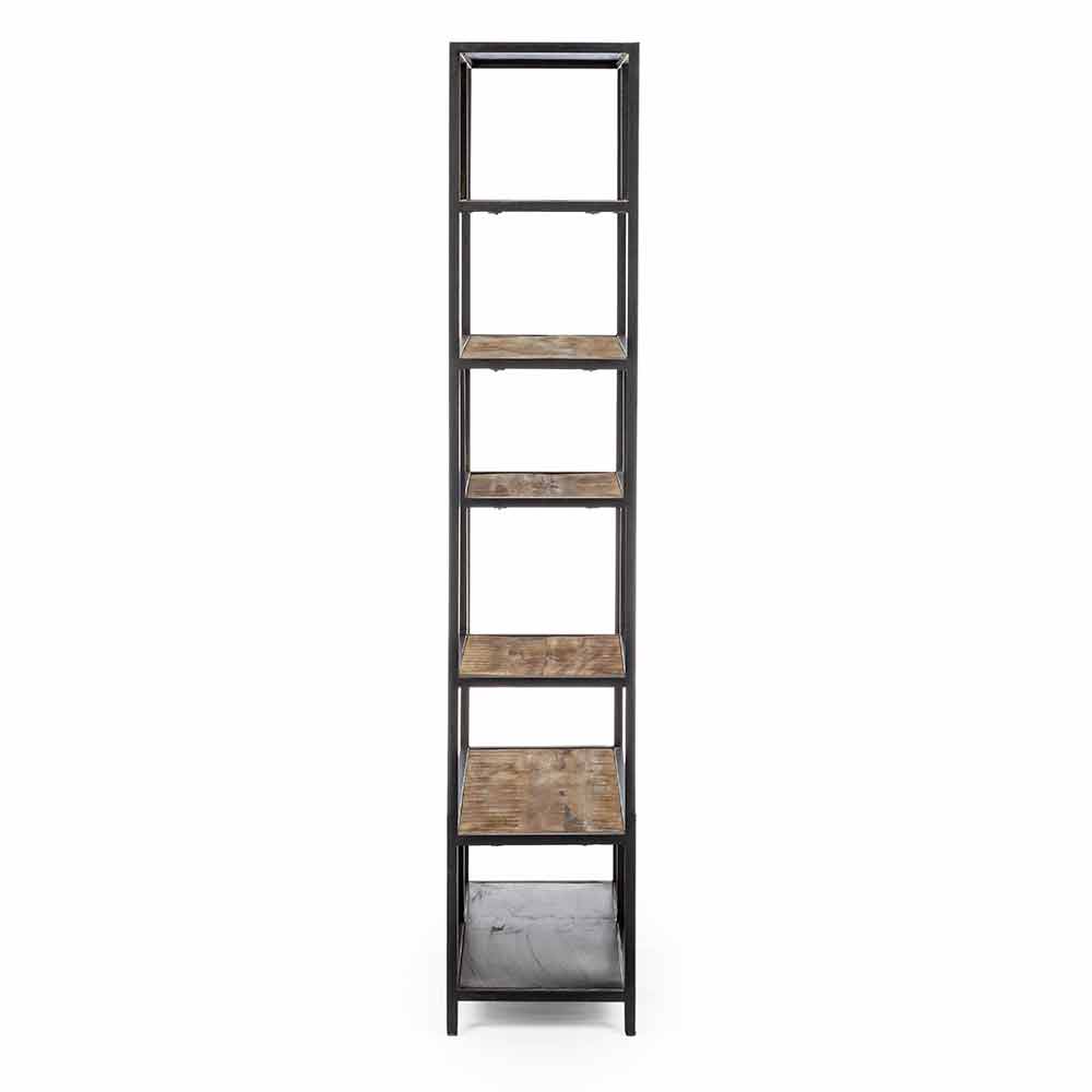 Gulvreol med malet stålkonstruktion og mangohylder.