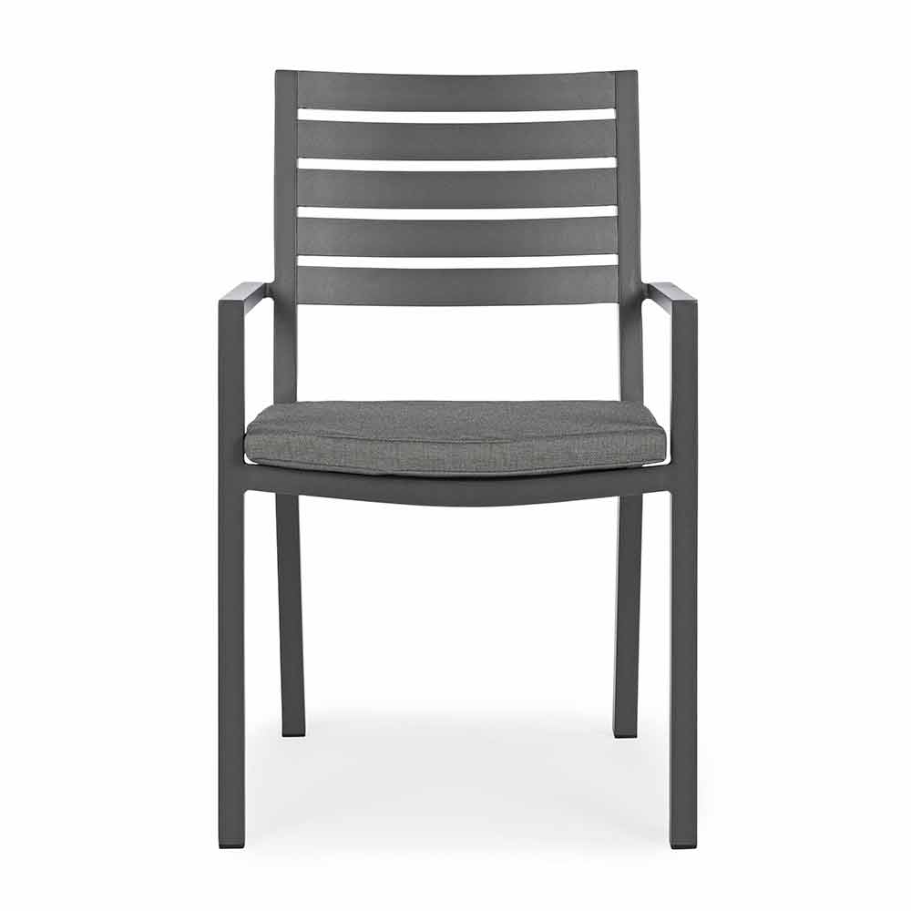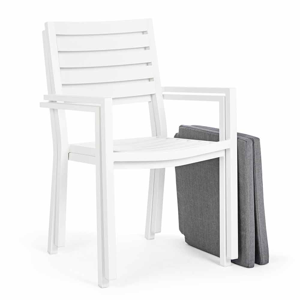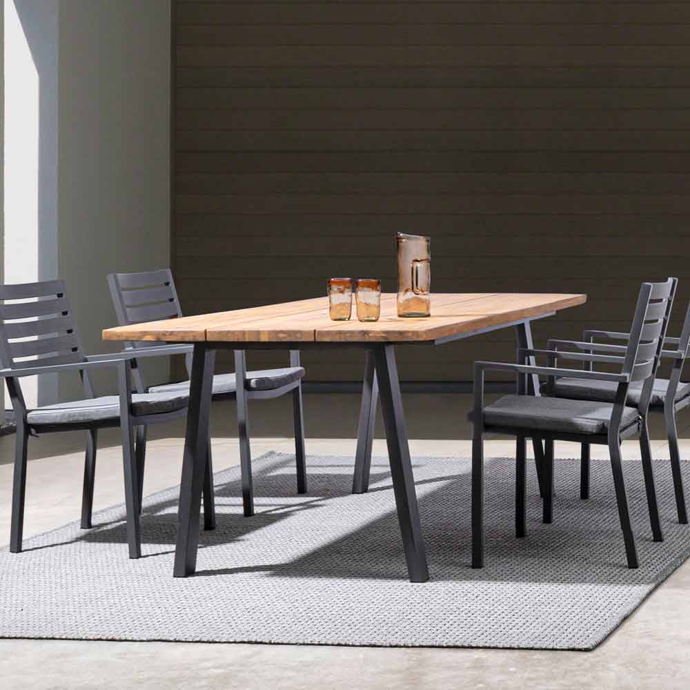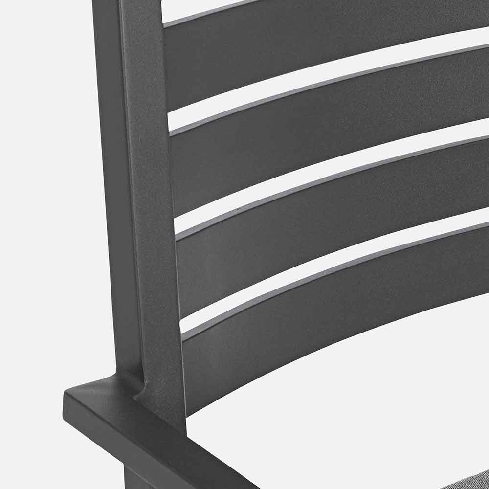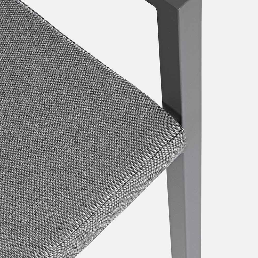 Aluminiumsramme , pulverlakeret (polyester), aftagelige hynder med spundet polystof (polyester). Kan stables .