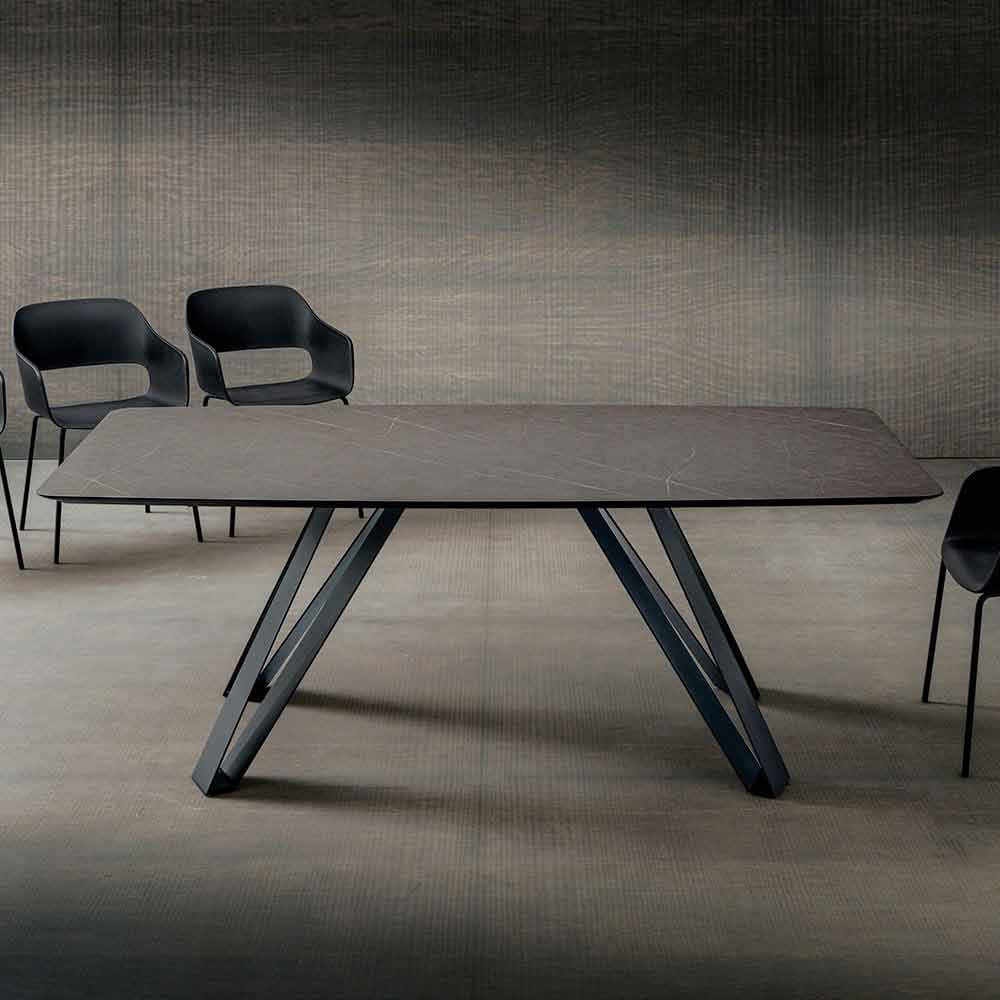Spisebord i lagdelt hpl og antracitmetal Fremstillet i Italien, høj kvalitet.