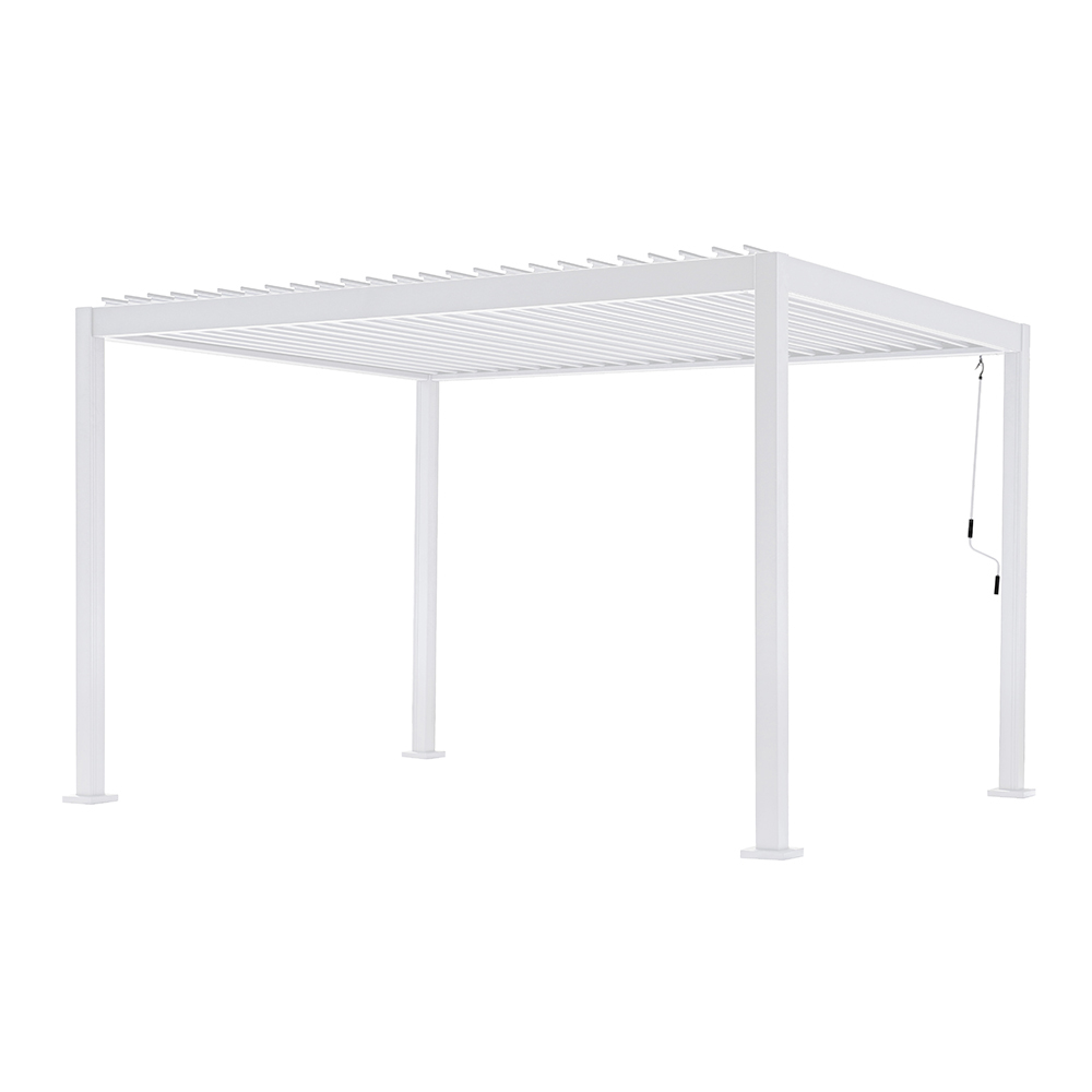 Denne pergola skiller sig ud med sit rene, lyse design , der er perfekt til elegant at forbedre ethvert udendørsområde. Den er fremstillet udelukkende af hvid aluminium med 105 x 105 mm bærende stolper og garanterer stabilitet, holdbarhed og et raffineret look, der passer harmonisk ind i moderne og minimalistiske omgivelser.