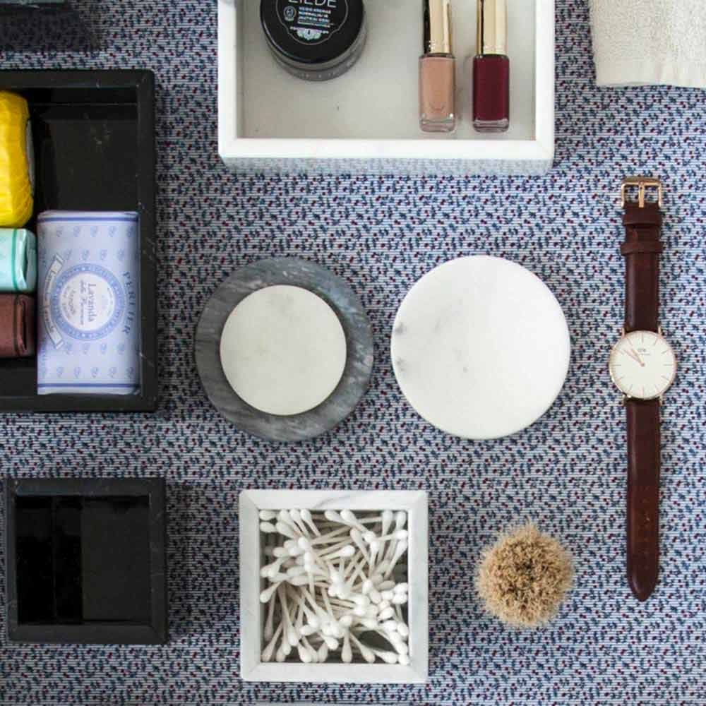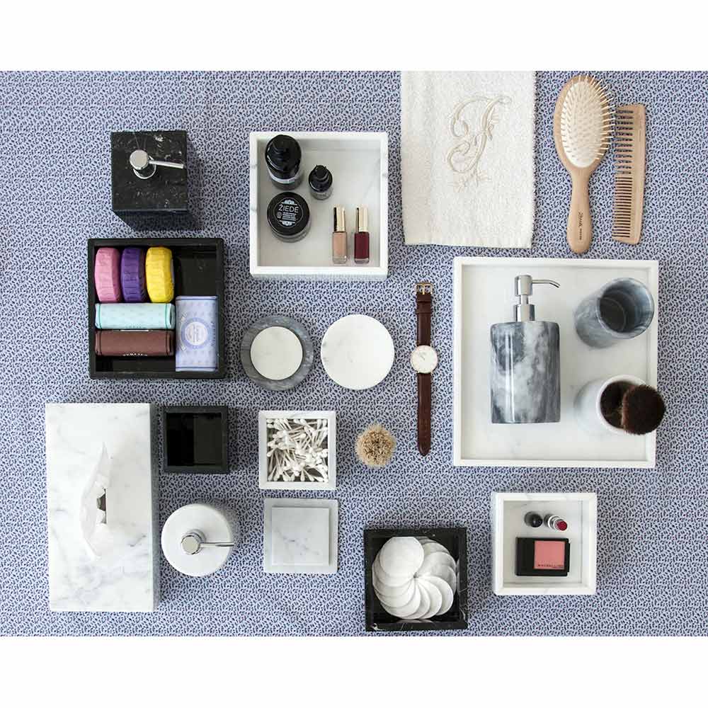 Badeværelses sæbeskål lavet udelukkende af fin hvid Carrara marmor . Det er et unikt stykke, da hver brugt marmorblok adskiller sig fra de andre for vener og nuancer.