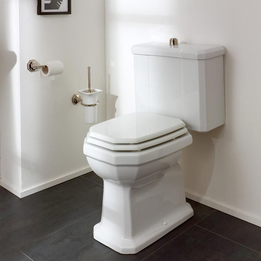 en monoblokboks med låg og afløbsbatteri med knap. Dette er en artikel, der