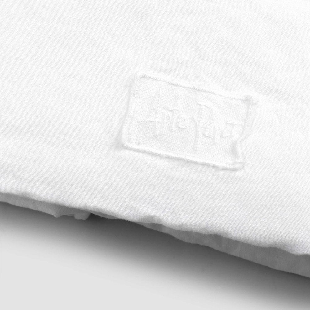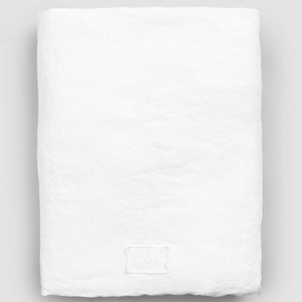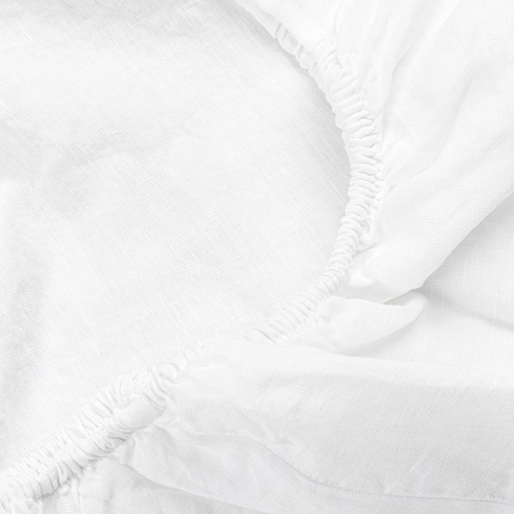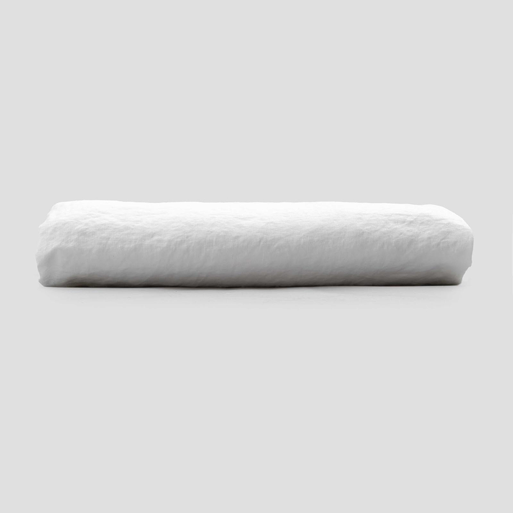 Monteret lagen til dobbeltseng i rent hvidt linned, luksushåndværk lavet i Italien.