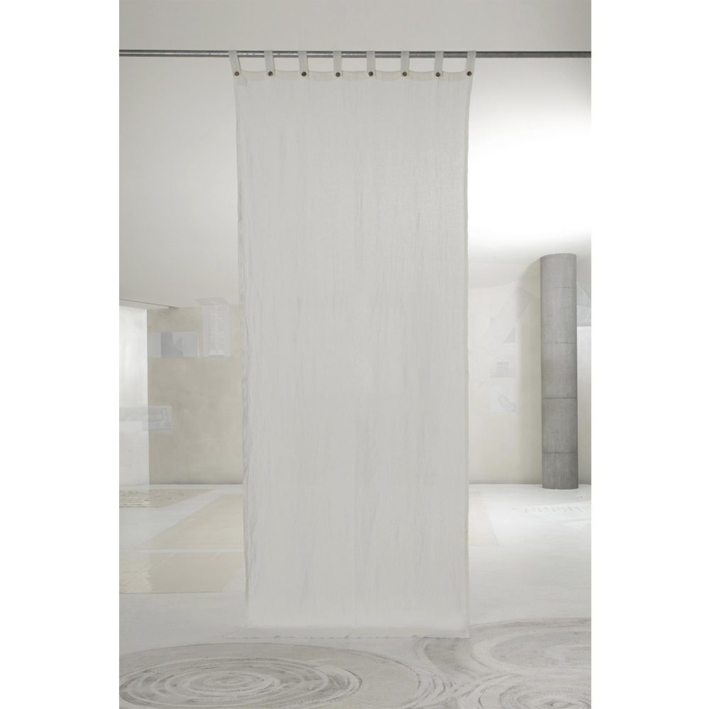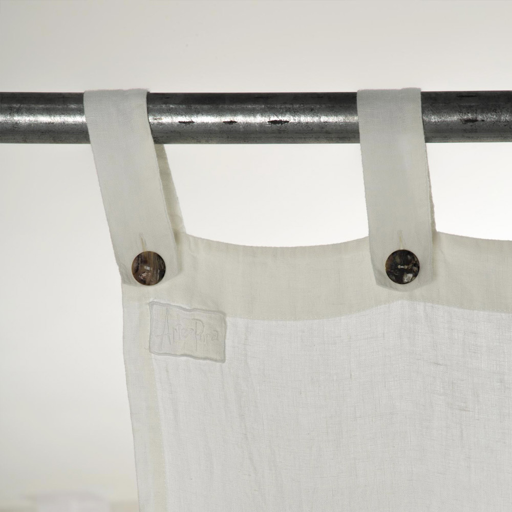 Hvid linnegardiner med perlemor knaplukning, håndlavet kvalitet lavet i Italien.