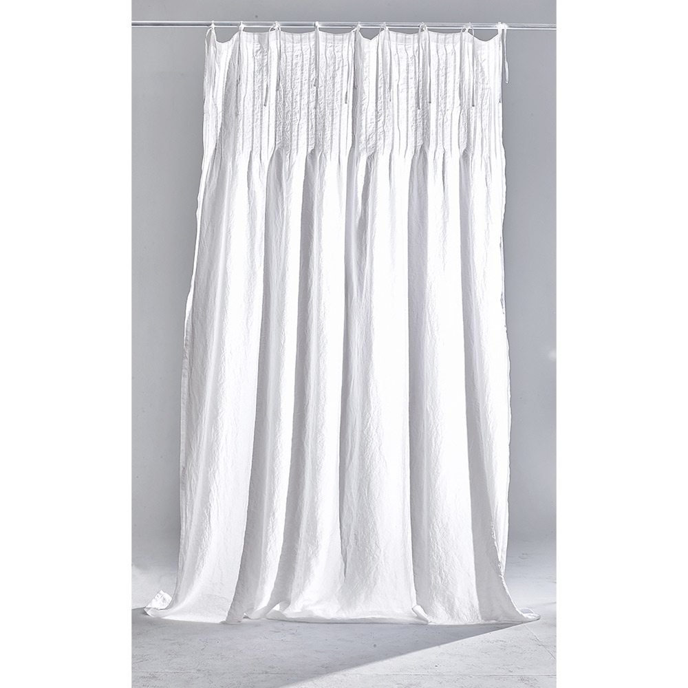 Hvidt gardin i let linned med ribben, luksuriøst design og høj kvalitet fremstillet i Italien.
