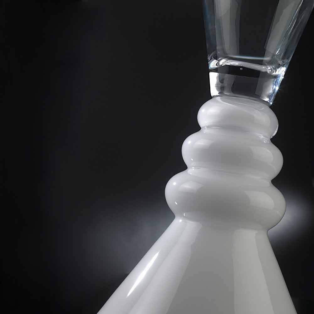 Dekorativ vase i gennemsigtigt og hvidt glas fremstillet i Italien.