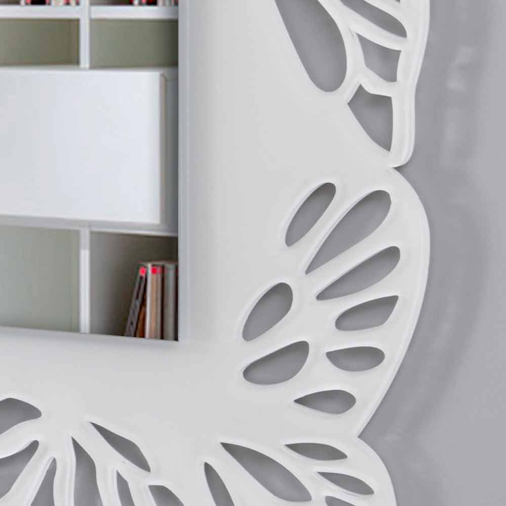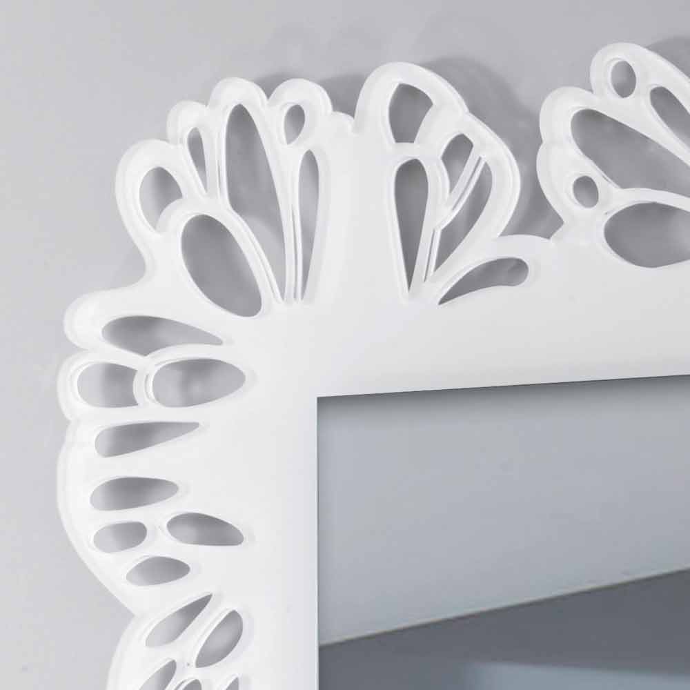 Rektangulært væg spejl med hvid dekoreret ramme, i moderne design plexiglas fremstillet i Italien.