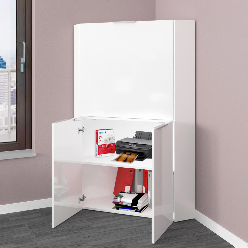 minimale og pladsbesparende hjørnedesign, der kan placeres på kontoret eller soveværelset.
