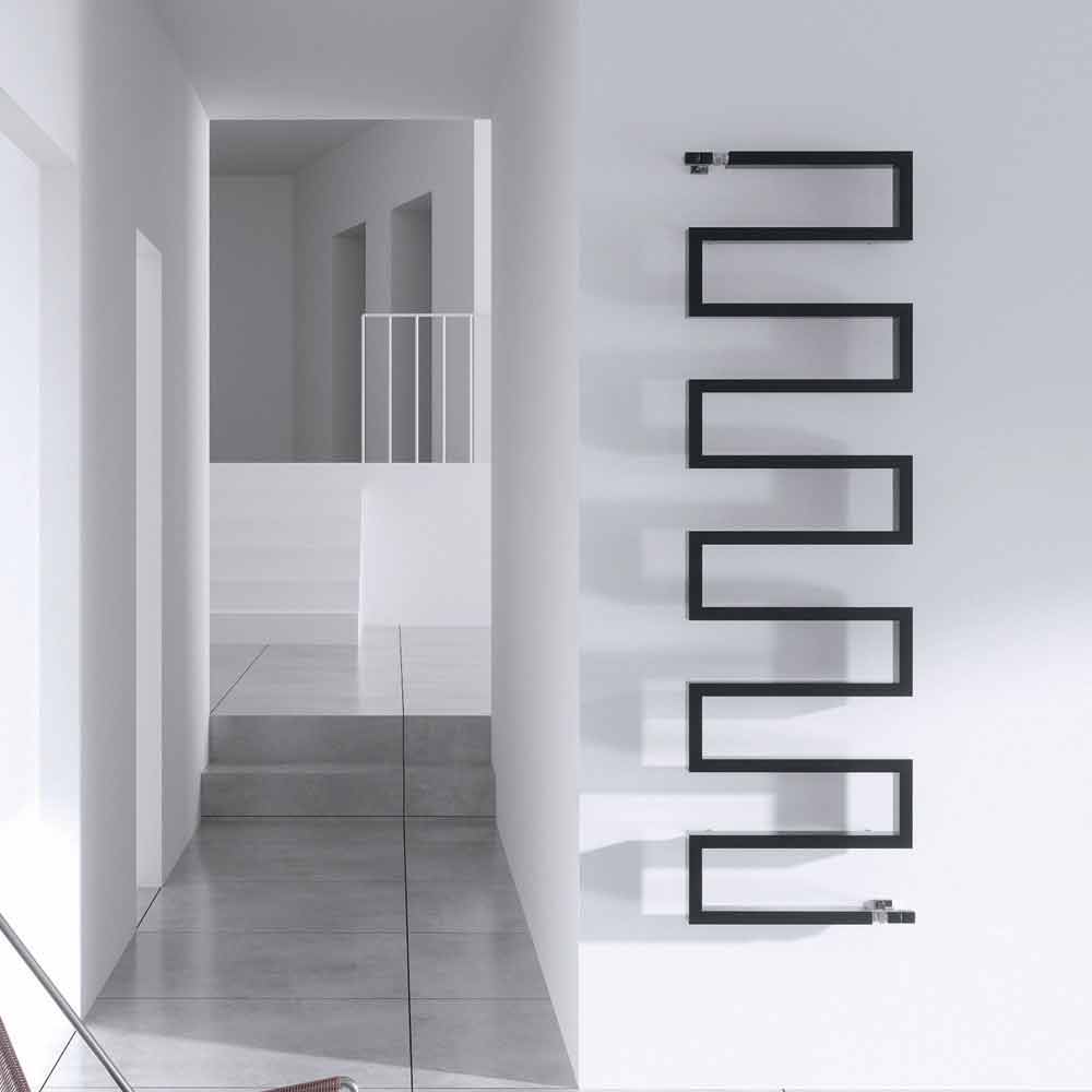 Lodret radiator i farvet stål, i den hydrauliske udgave. En kollektion med et stærkt grafisk tegn. Form, materiale, funktion og teknologi skaber ikke længere simple håndklædevarmere, men rigtige indretningselementer. Vælg den farve, der passer bedst til dig!