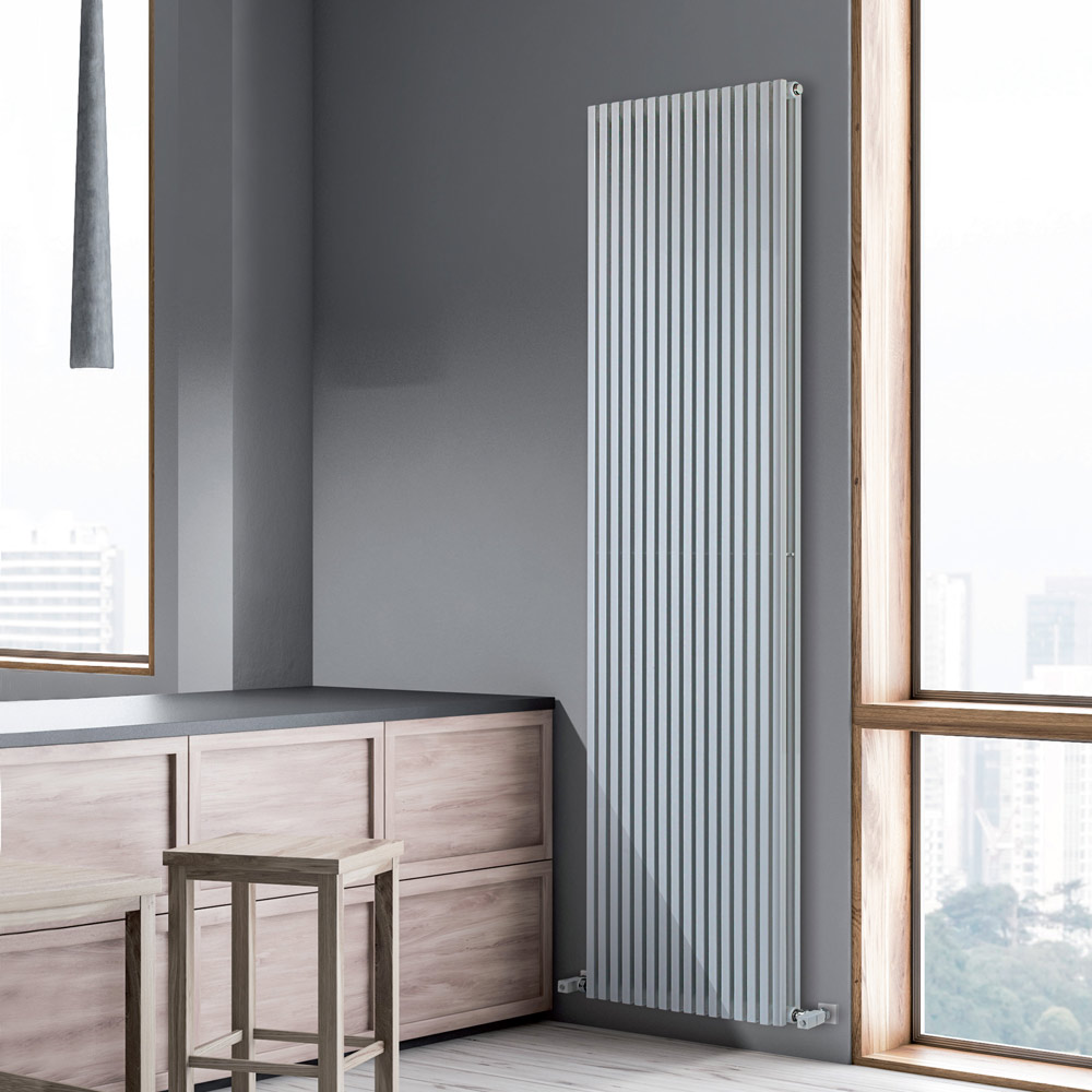 Hydraulisk radiator i kulstofstål med en ren hvid blank finish bestående af en dobbelt serie af 2 cm kvadratiske vertikale elementer svejset på 3,5 cm vandrette manifolde . Fremstillet i Italien med vægmonteringssæt, udluftningsventil og blindkappe inkluderet . Hele produktionsprocessen finder sted på en fabrik nær Treviso, kun få kilometer fra Venedig, hvor kvalitet er et konstant mål . Kvalitet er synonymt med omhyggelig opmærksomhed på detaljer og udvælgelse af de mest pålidelige materialer. Sådan skabes radiatorer med den største renhed i design og funktionalitet.