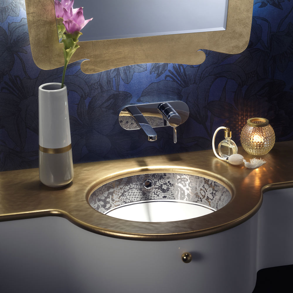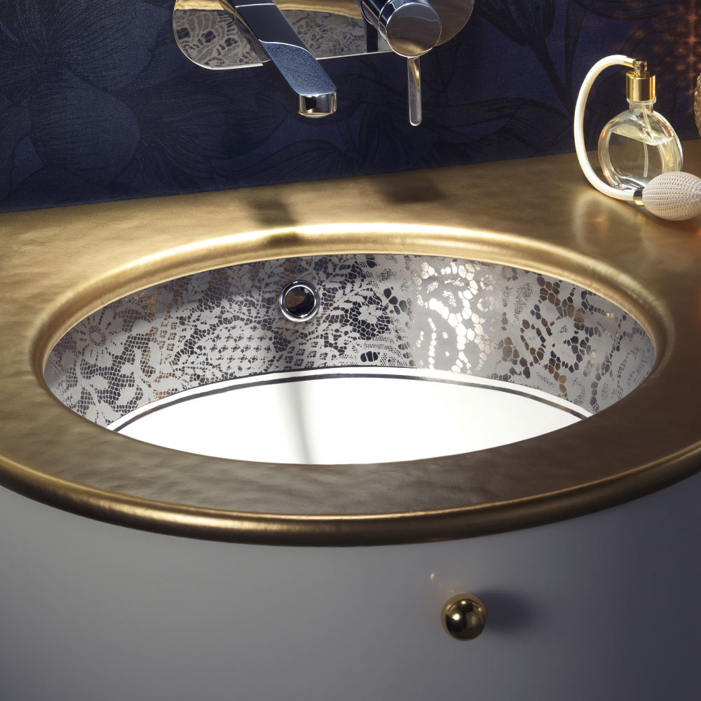 Indbygget vask i Fire Clay med Platinum Lace Band Made in Italy - Erioli