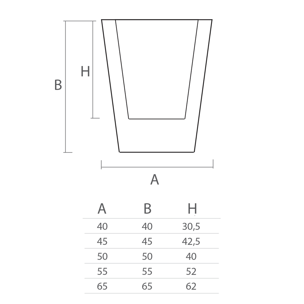 Tilgængelige størrelser:- L 40 x D 40 x H 30,5 cm;