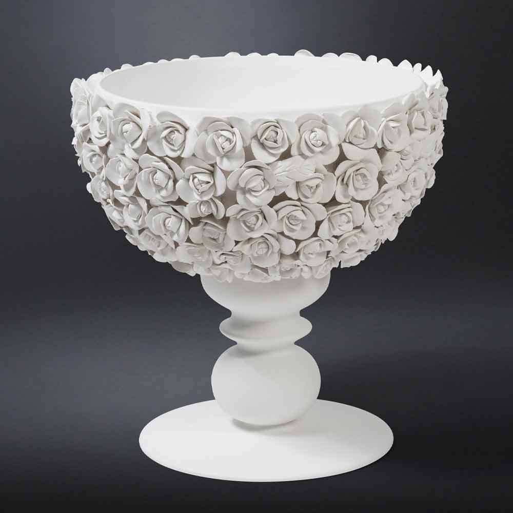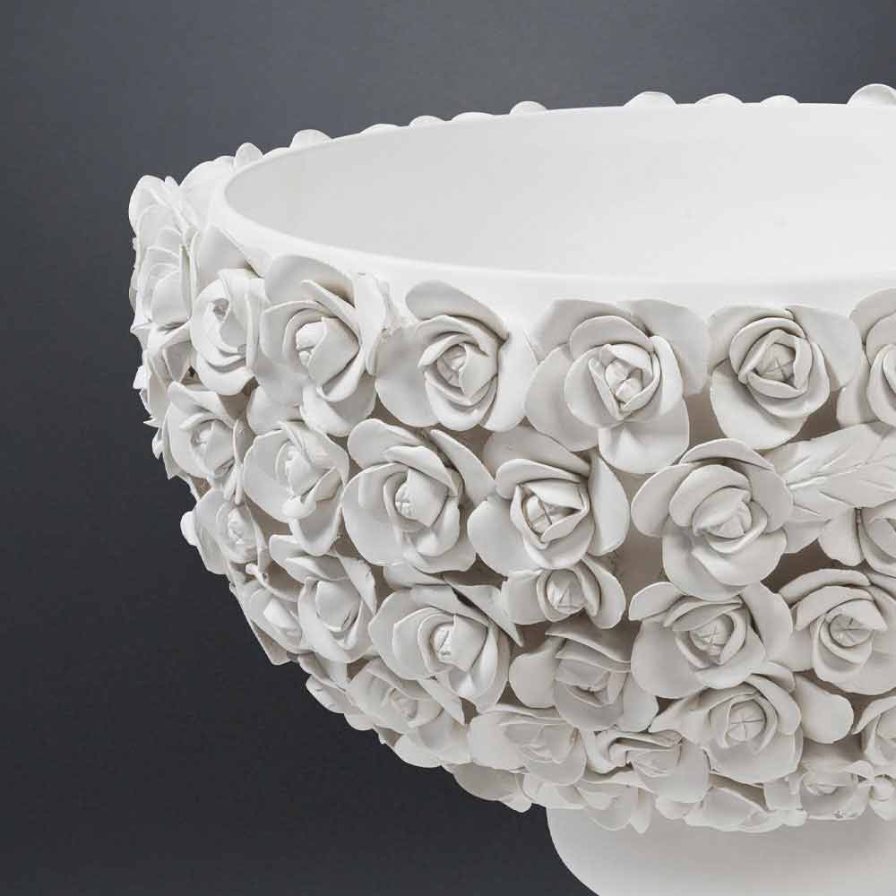 Indendørs vase i mathvid keramik håndlavet i Italien. Elegance og klassisk stil er hovedtrækkene i dette vidunderlige dekorative element, hvis figur er understreget af bløde og bølgende linjer for et design, der minder om gamle skulpturer, der er typiske for italiensk kunst. For at berige æstetikken er den særlige blomsterforarbejdning, der øger den raffinerede side af produktet endnu mere. Brugen af keramik og håndværk understreger dens værdi og kvalitet for et resultat, der er i stand til at tilpasse sig enhver stilistisk situation. En ideel æstetik til de mest forskellige miljøer, lige fra boligindretning til hoteller, restauranter, kontraktområder, kurbade, men også som ramme om begivenheder og bryllupper.
