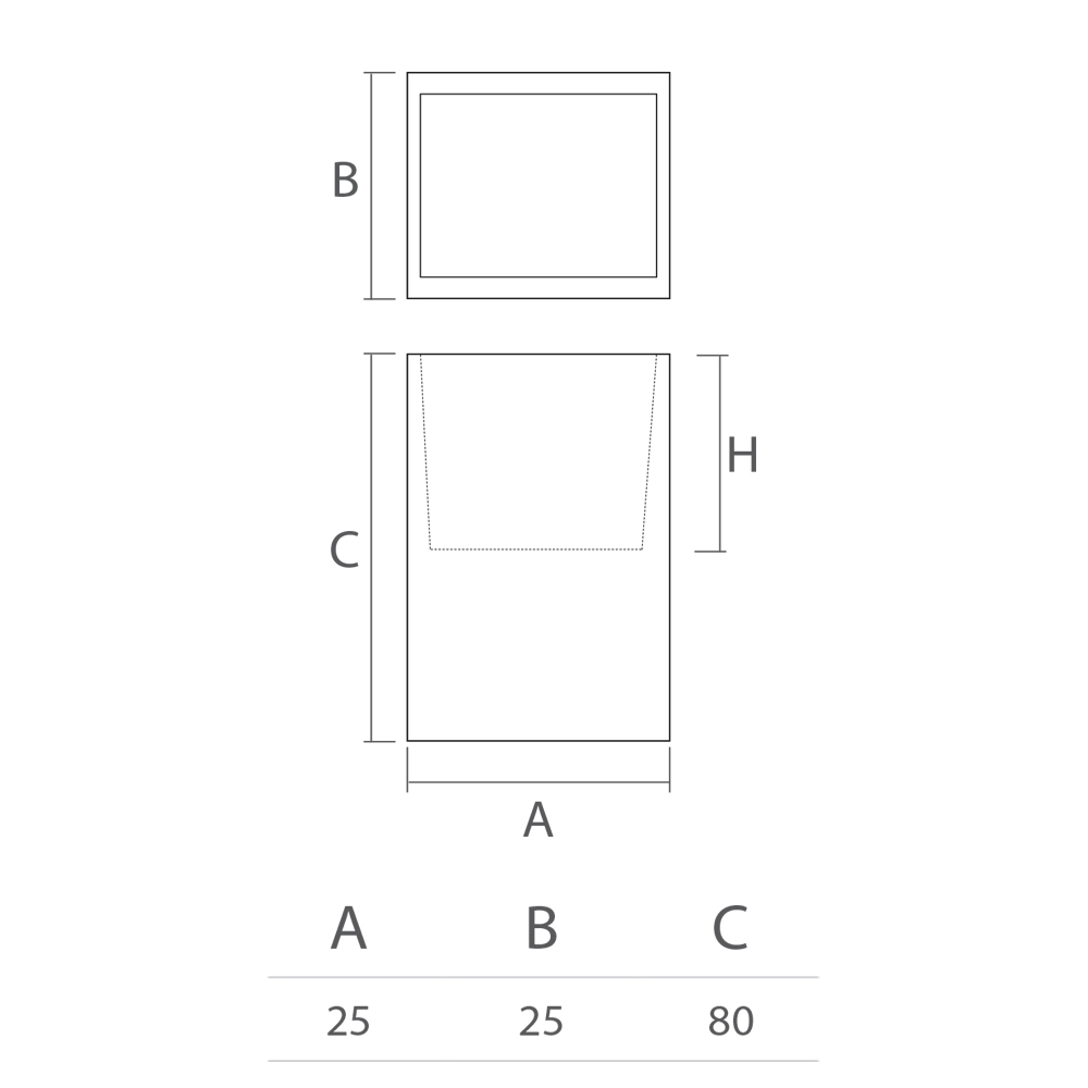 Tilgængelige størrelser:- L 25 x D 25 x H 80 cm