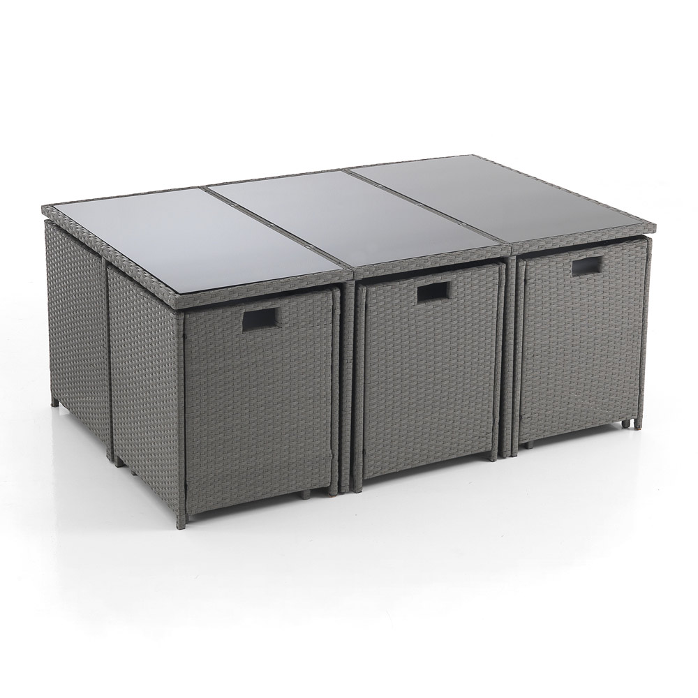 Dette modulære havesæt er essensen af alsidighed og pladseffektivitet . Sættet er designet til at passe til alle udendørs omgivelser og inkluderer et stilfuldt bord og matchende siddepladser , der kombineres til et kompakt, overskueligt arrangement, når det ikke er i brug, og forvandles til en moderne designskulptur.