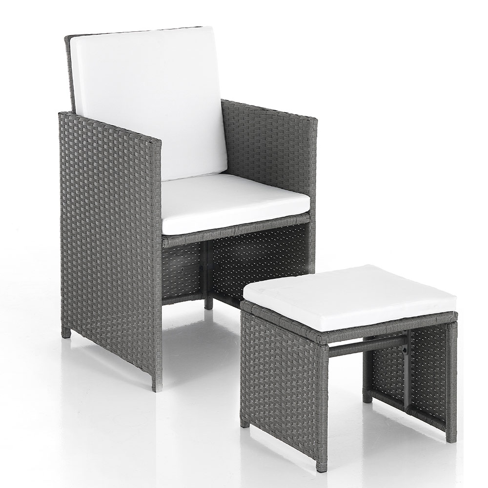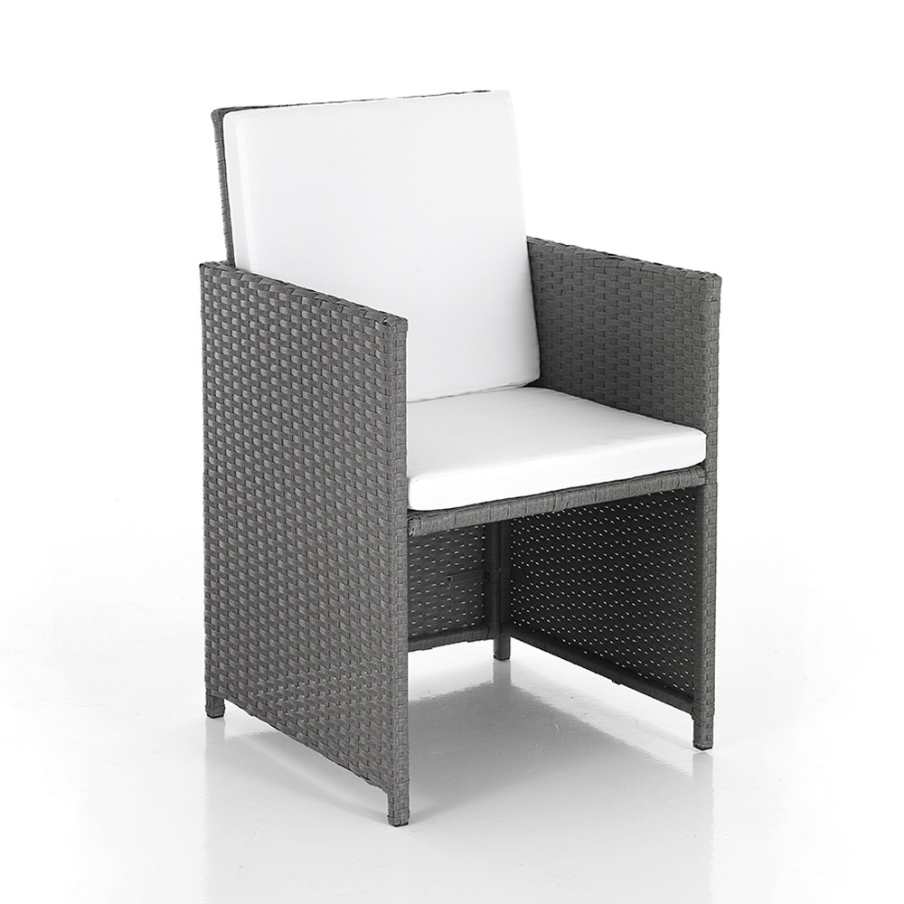 Den vævede finish giver sættet et raffineret og holdbart look, ideelt til at underholde gæster med stil eller nyde afslappende aftener under stjernerne. Puderne giver en behagelig kontrast, der inviterer til lange perioder med afslapning og udendørs samtaler.