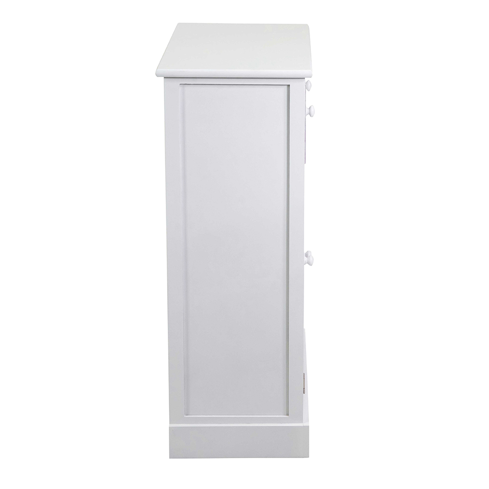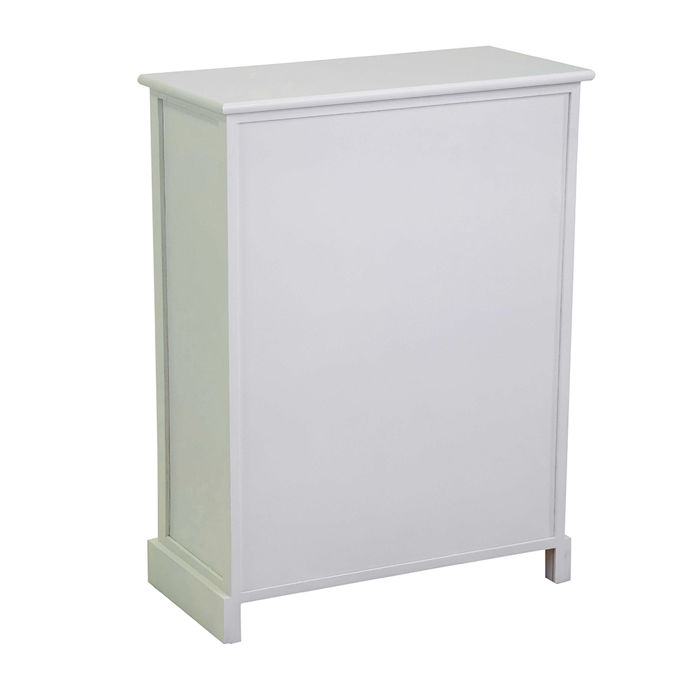 Den helt hvide finish giver skabet et lyst og raffineret look, der kan tilpasses enhver indretningsstil, fra klassisk til moderne, og tilføjer et strejf af friskhed til rummene. De tone-i-tone knopper og diskrete hængsler fuldender designet og giver det et harmonisk og detaljeret look.