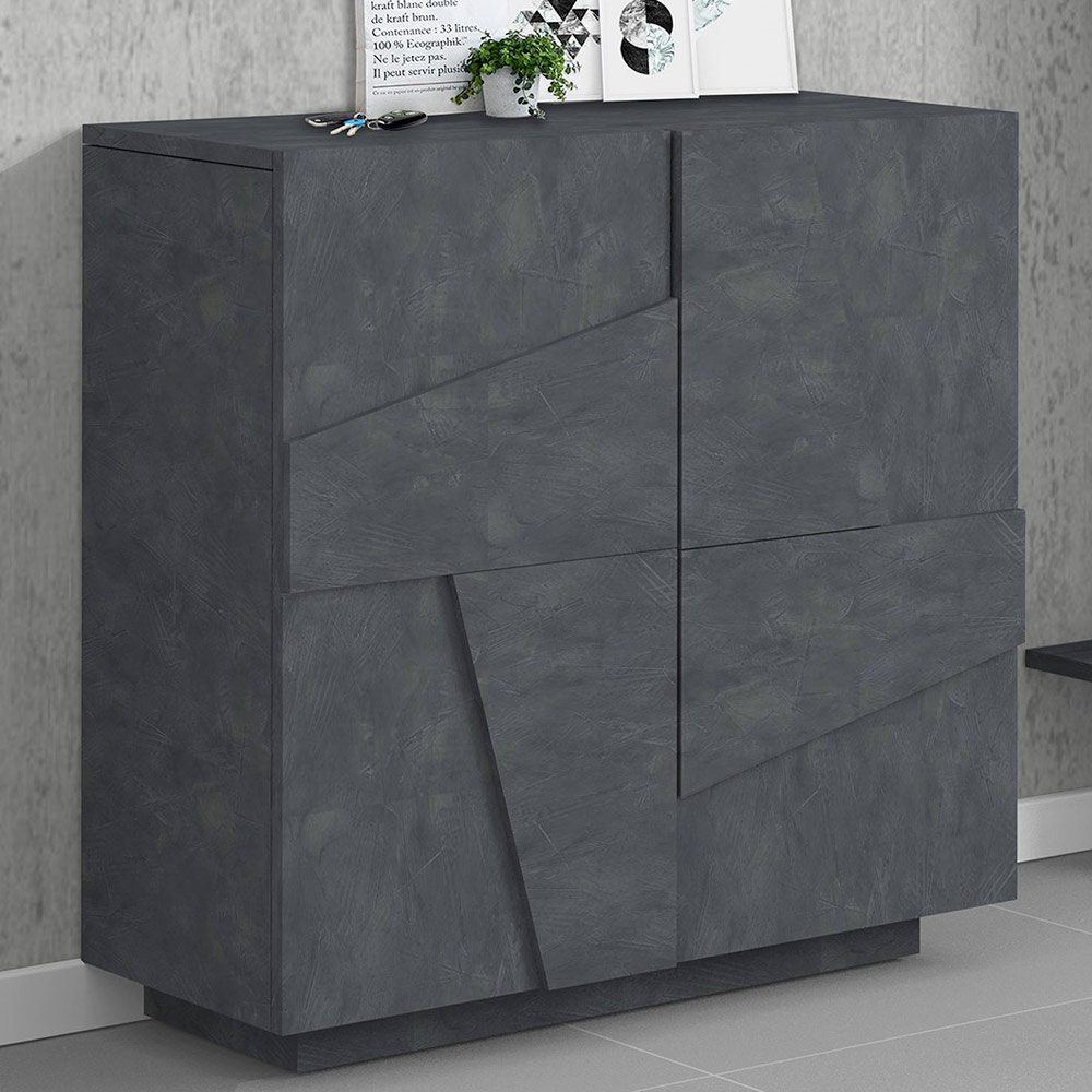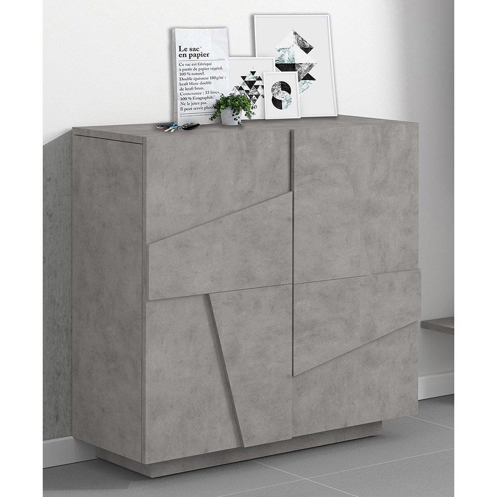 2 hængslede døre, der er specialfremstillet af den geometriske udskæring i relief på overfladen, der lukker