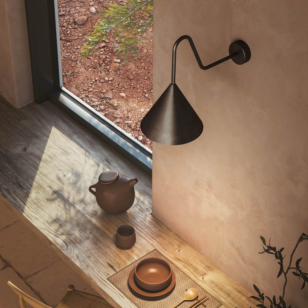 lavet i Italien. Samlingen af lamper og væglamper er en klar reference til den naturlige enkelhed i formen. Det klassiske skilt, men fuldender samtidig ethvert rum, husligt eller offentligt.