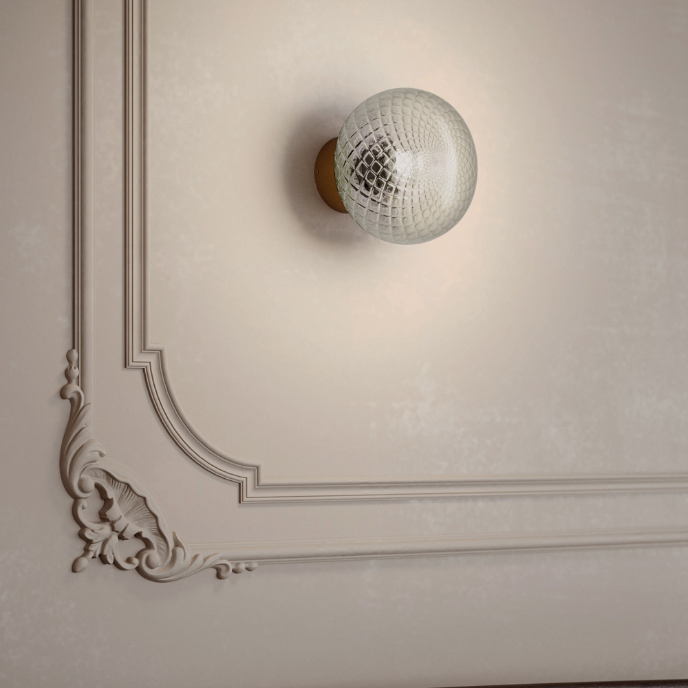Væglampe i naturlig messing og gennemsigtigt glas Made in Italy