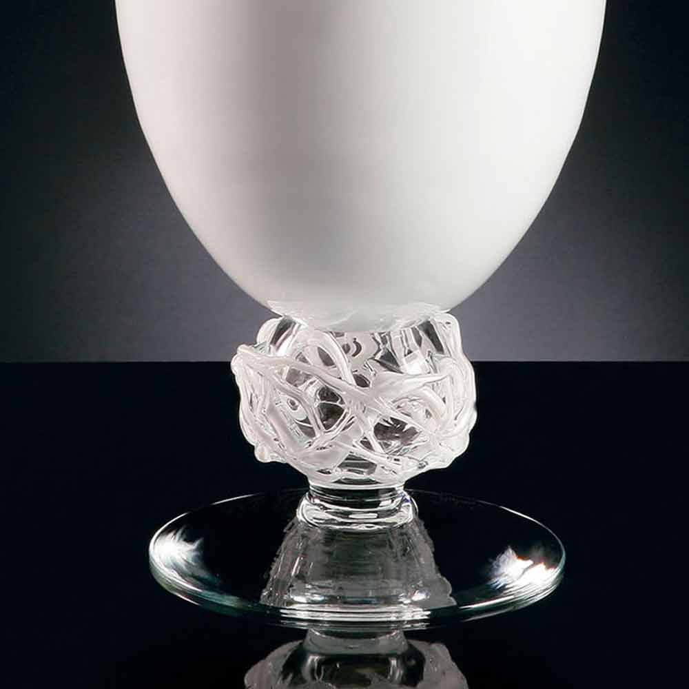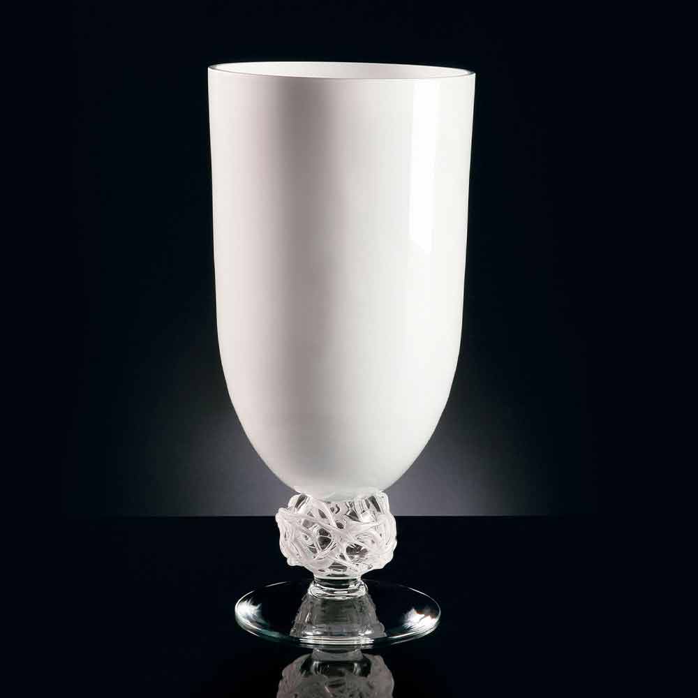 Håndlavet vase til interiør i hvidt glas med gennemsigtig base Lavet i Italien.