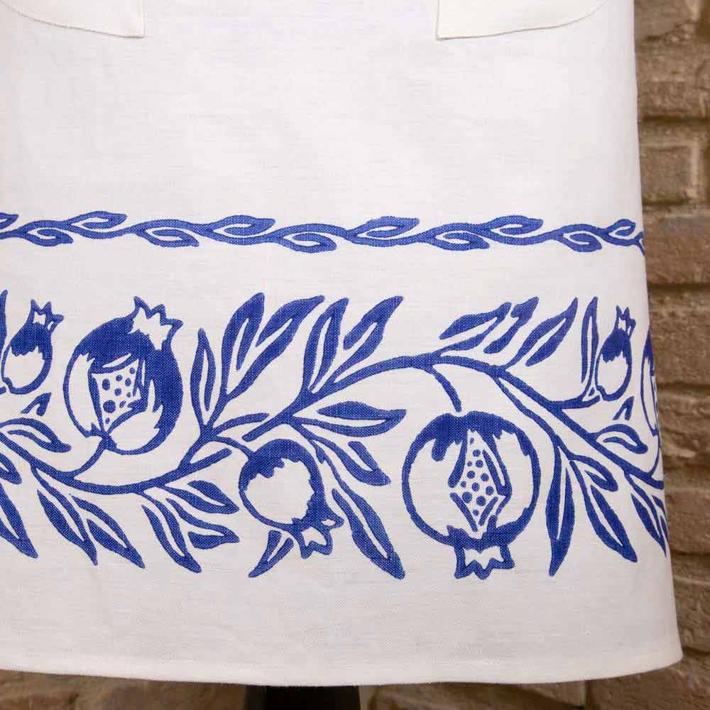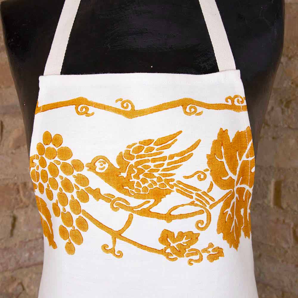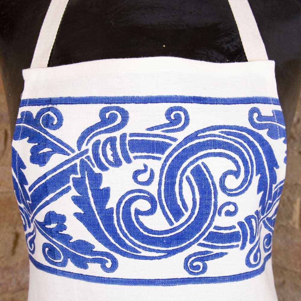 Køkkenforklæde med hagesmæk og lommer med højt håndværk i rent linned med ældgamelt håndtrykt kunstdesign, fås i tre varianter, unikt stykke italiensk kvalitet.