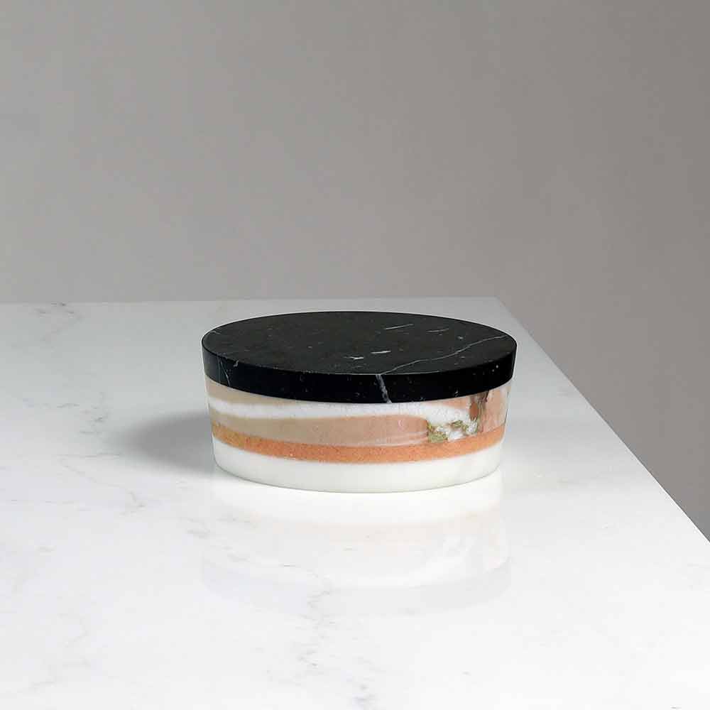Beholdervase eller centerpiece i stratificeret marmor, høj kvalitet fremstillet i Italien.