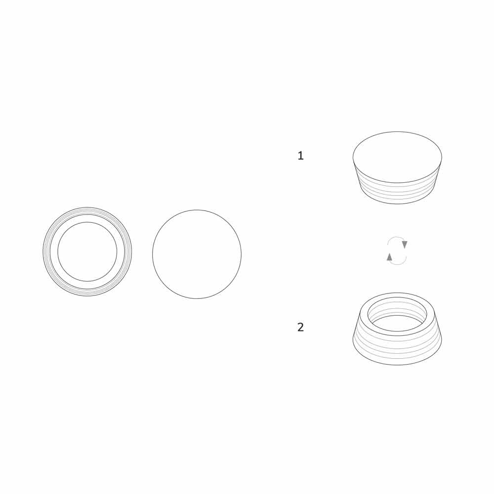 Denne hævede vase er født ved overlejring af kugler med forskellige essenser, der er nøje udvalgt blandt affaldsmaterialerne fra andre processer, hvilket garanterer miljø- og designkvalitet på samme tid. Den består af et lag hvid Carrara marmor, sort Marquinia marmor, lyserød portugisisk marmor og Medici breccia fra Vagli.