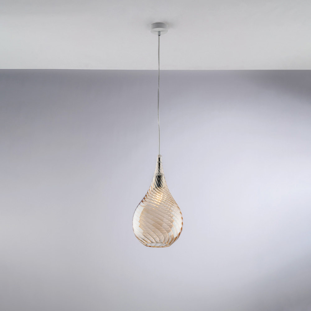 Denne pendellampe fås i transparent , ravfarvet eller grå finish og passer til en række forskellige indretningsstile: lys og luftig i den transparente version, varm og omsluttende i ravfarvet, moderne og elegant i grå. Den er perfekt til køkkener, køkkenøer, spiseborde, gange, læsekroge og designer-kontrarum og kan bruges individuelt eller i flere kompositioner.