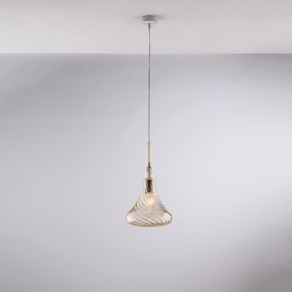 Denne pendellampe fås i transparent , ravfarvet eller grå finish og passer nemt til en række forskellige indretningssammenhænge: lys og minimalistisk i den transparente version, varm og omsluttende i ravfarvet, diskret og elegant i grå. Den er ideel til køkkener , køkkenøer , spiseborde , gange , læsehjørner og designerkoncerter , uanset om den bruges individuelt eller i kompositioner.